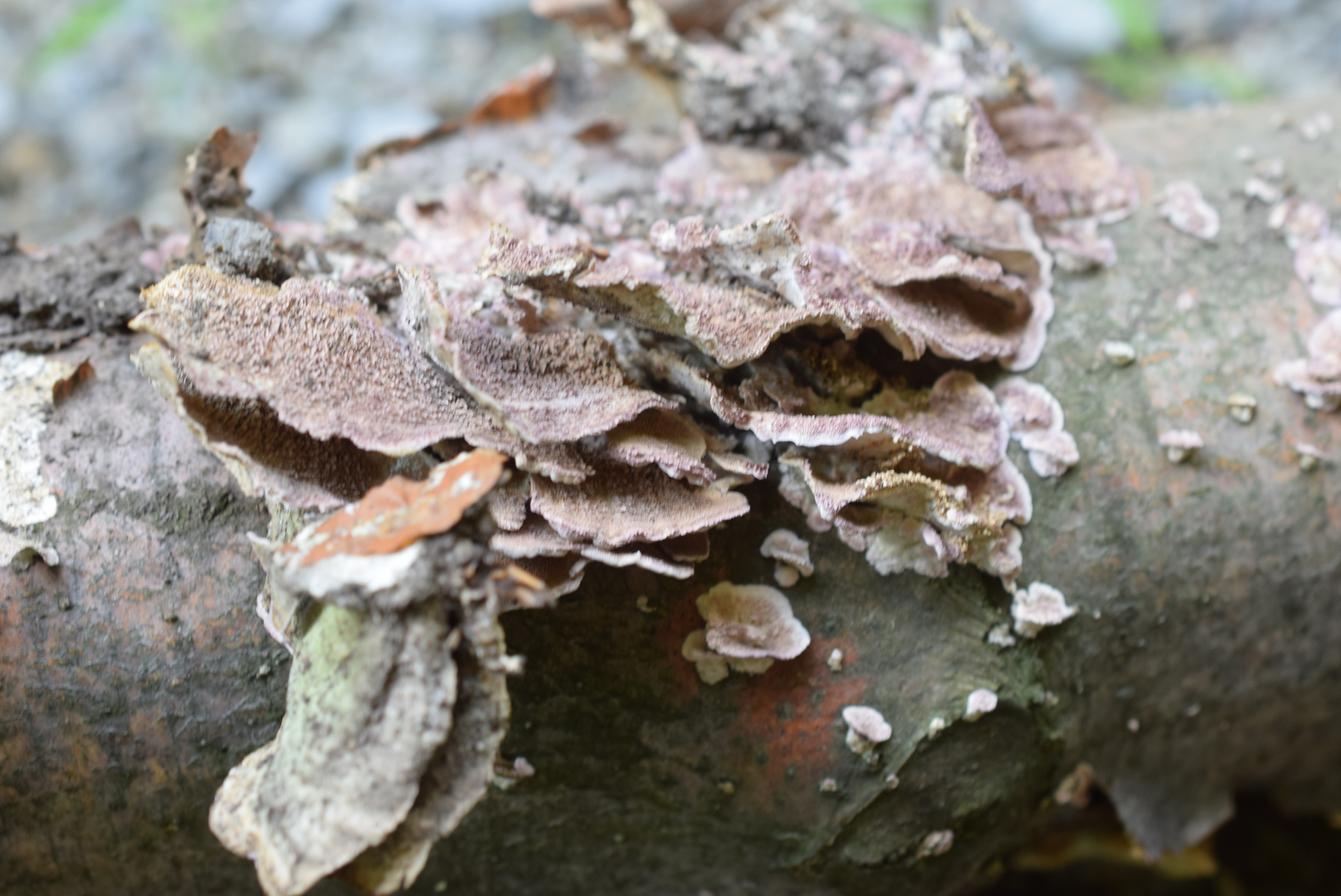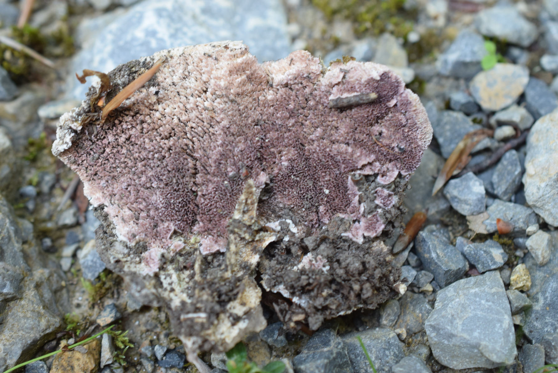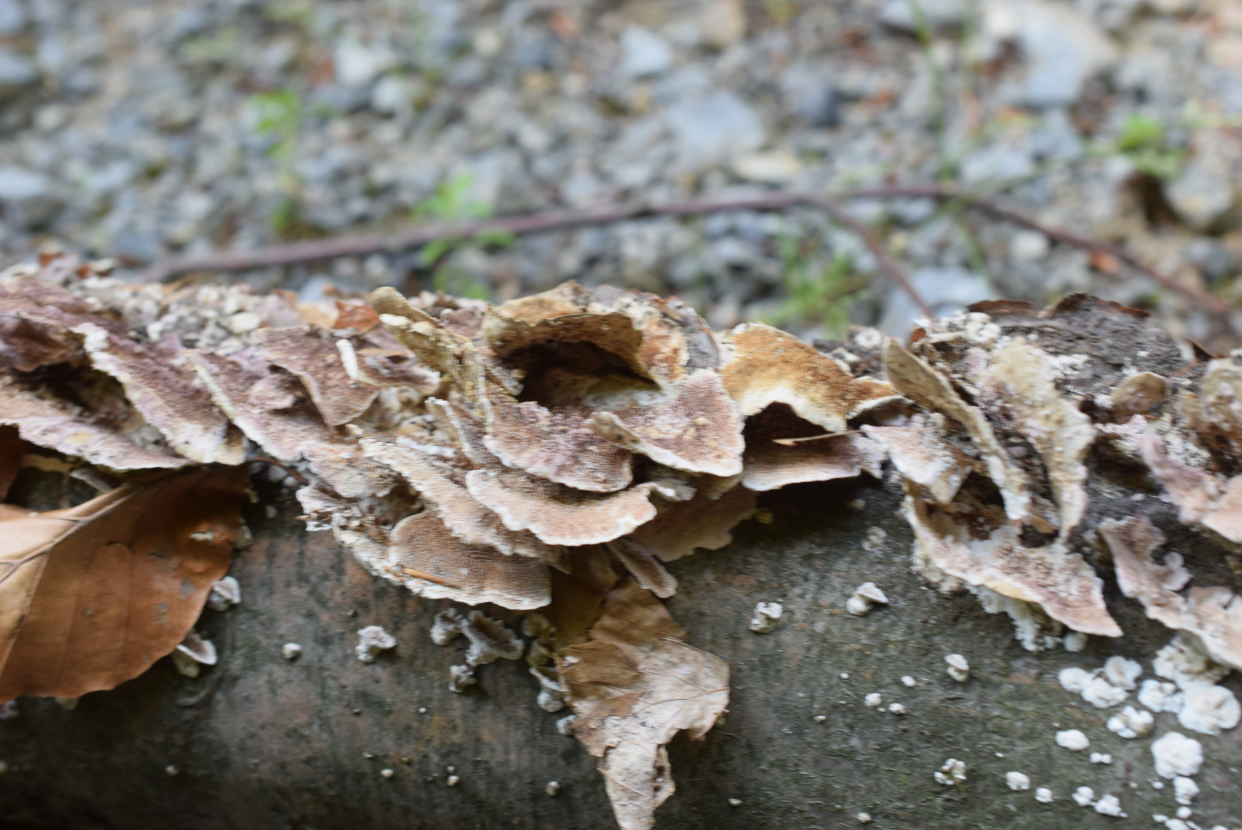 Frk. mit starke trockenschaden sehr Intensive Blautöne aber kaum zu erkennen ( aus Hand gut zu sehen ) Für Chondrostereum purpureum viel zu ungewöhnlich weil hat bei manche Frk. stacheln usw. Auch für Trichaptum etwas ungewöhnlich , einfach hab keine Idee