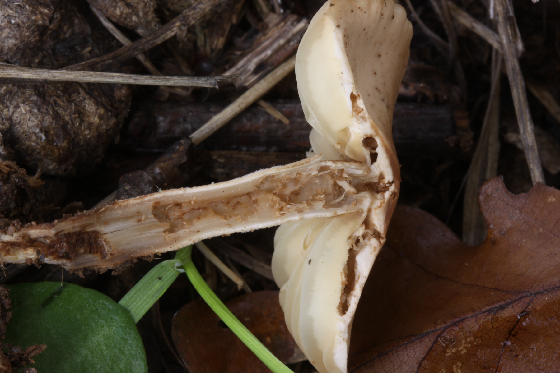 Lamellen: Bei jungen Exemplaren grauweiß, später braun.
