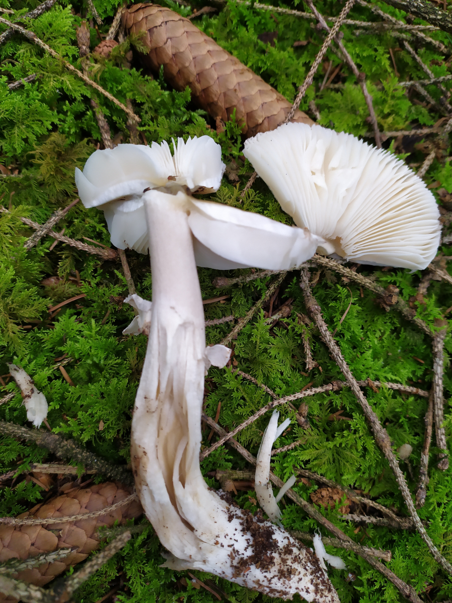 Beim ersten müsste man den Geschmack der Milch (einmal ohne Fleisch und einmal das Fleisch selbst) beurteilen, sowie das Verfärbungsverhalten der Milch, wenn man sie auf ein weißes Taschentuch tropft und ein paar Minuten beobachtet. Sieht aus meiner Sicht jetzt eher nicht nach Lactarius decipiens (Milder Schwefelmilchling) aus.