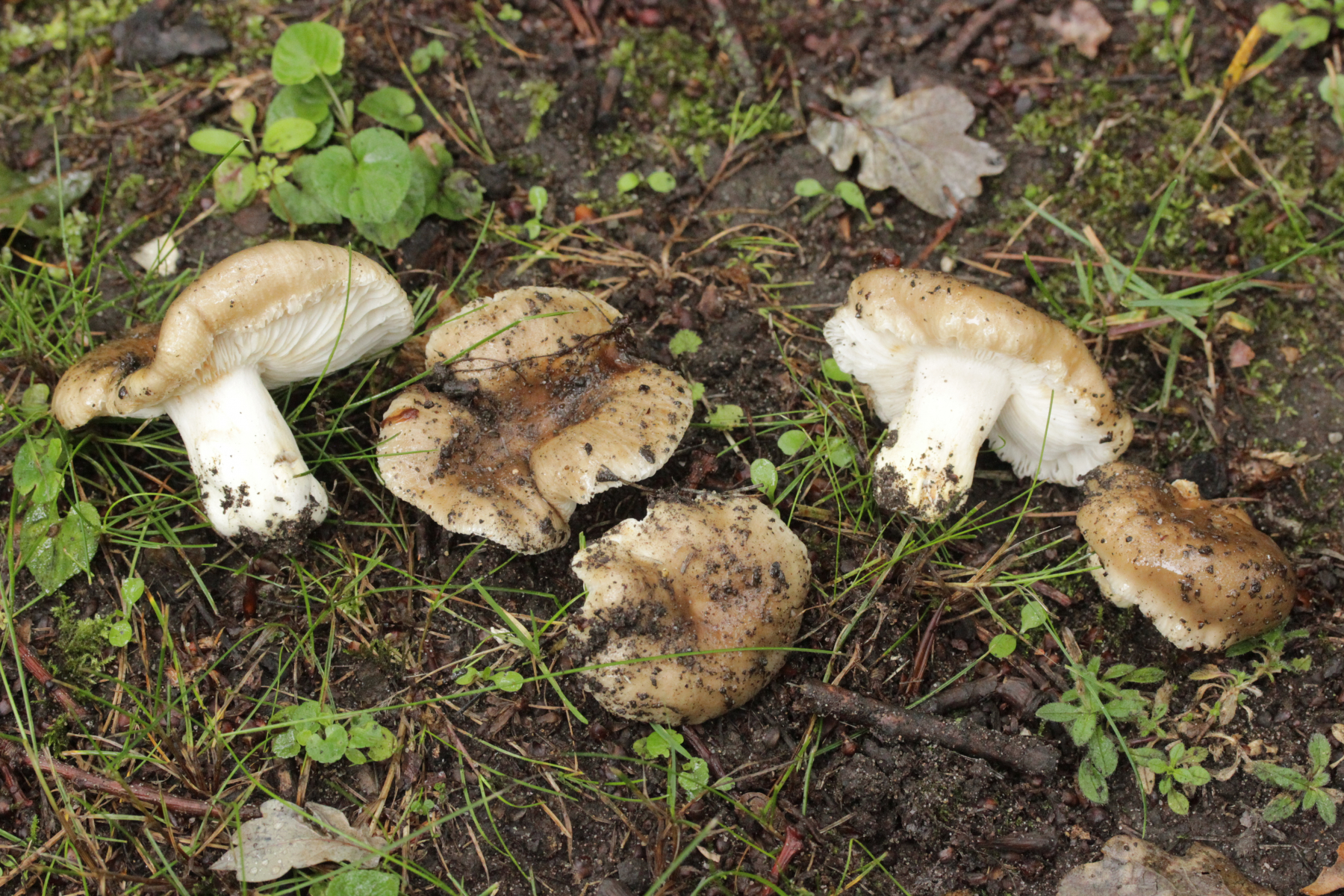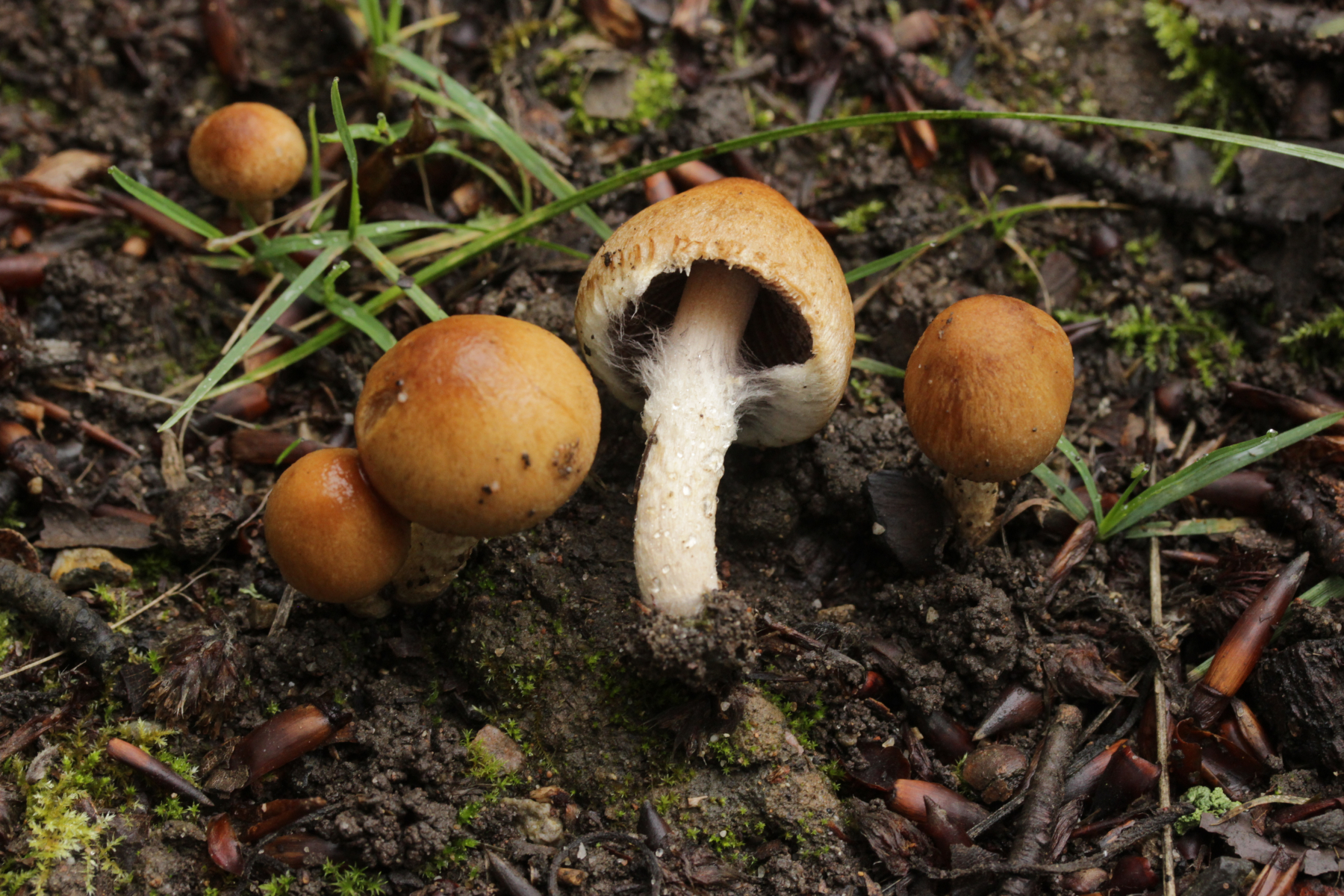 1. Ganz am Anfang gab es eine Kollektion von Inocybes. Das ist ja eigentlich so gar nicht mein Ding, aber weil es so eine schöne Kollektion und das Köfferchen noch leer war, habe ich sie eingepackt. Geruch war nicht feststellbar, Begleitbäume waren Quercus rubra, der Stiel war bis unten hin bereift.
