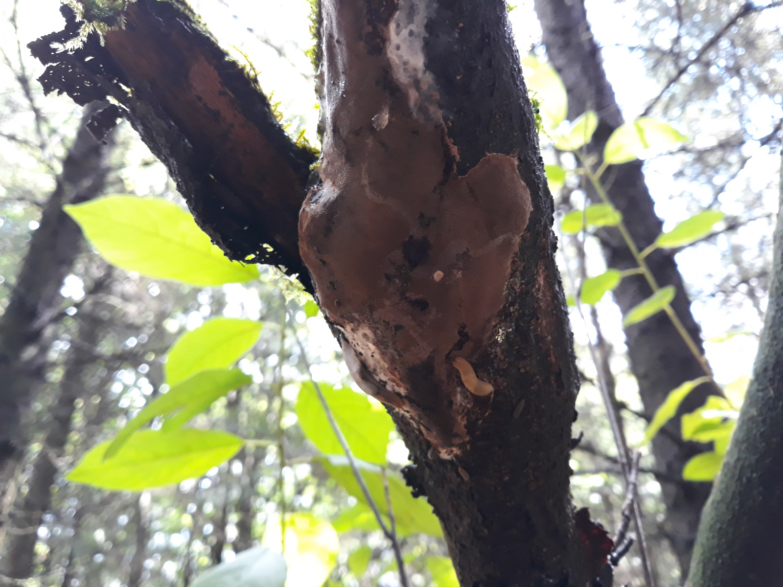 Heute hab ich an einem tw. schon abgestorbenem Faulbaum vmtl einen resupinaten Feuerschwamm gefunden.
