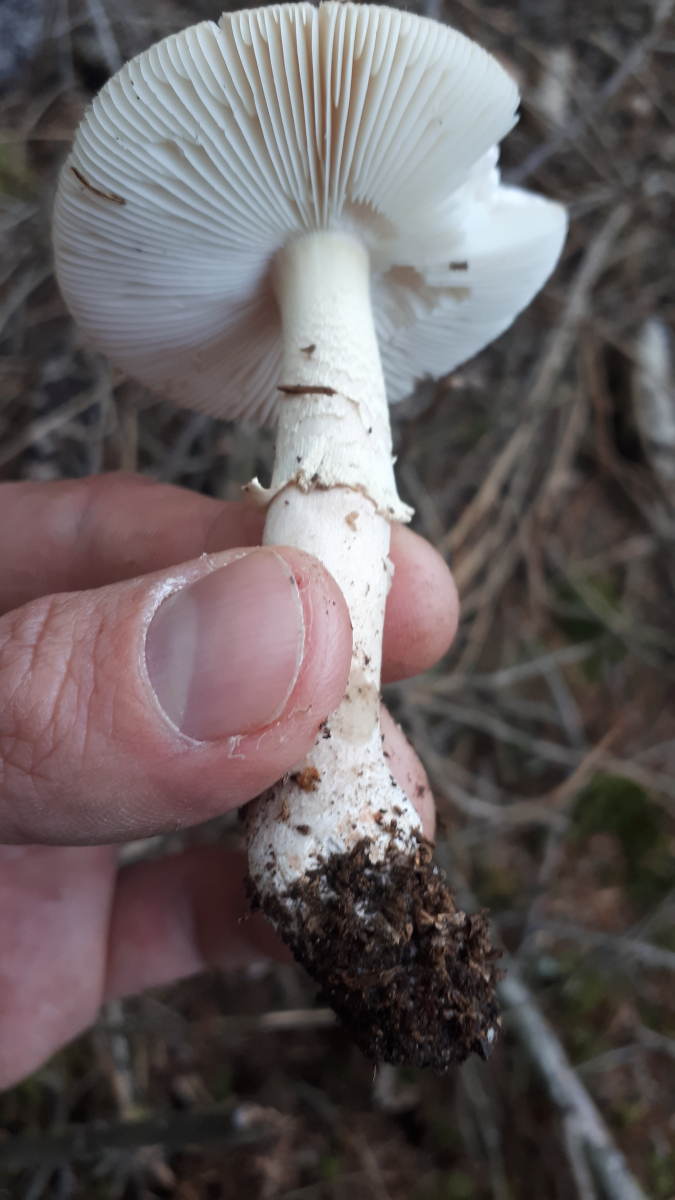 Ich habe hier im Fichtenwald einen kleinen aufgeschirmten Pilz gefunden... Ring anliegend und gerieft, oberhalb leichte Natterung,Velumreste auf Hut... nur leichtes rötliches Erscheinungsbild an Basis (keine Rübe, eher zylindrisch )Zur Stilbasis dunkler werdend . Hab den Stil angekrstzt, kein besondere Geruch... warte noch auf Rötung... Perlpilz?? lg Wastl