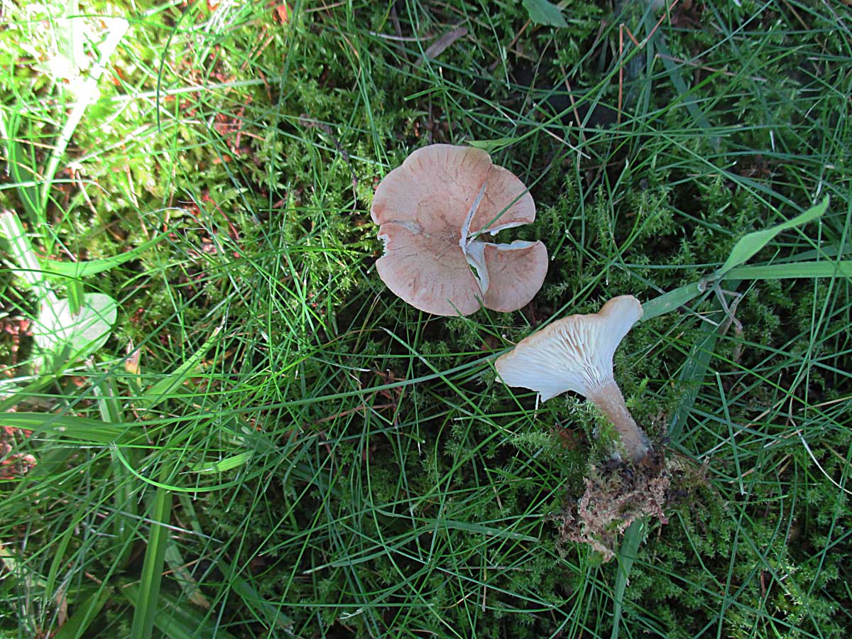 Dann ging die Jagd weiter über pilzleere Grasflächen bis ich dann auf diese hier stieß. Wegen des eher dunklen Stieles glaube ich an Clitocybe costata, den Kerbrandigen Trichterling. Sicher bin ich mir da aber nicht.