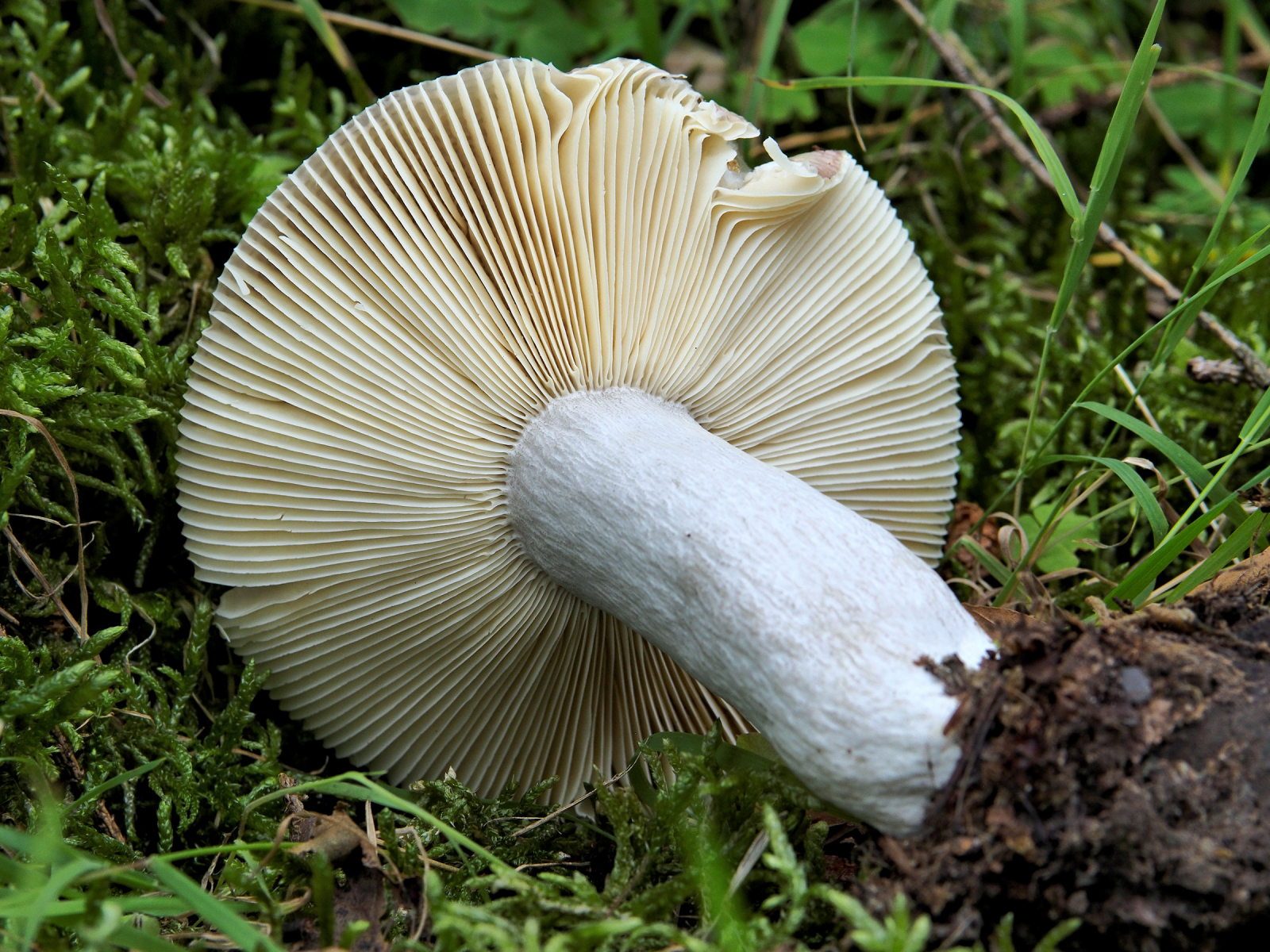 6) Lamellen beige bis leicht ockerfarben, Stielgabelig