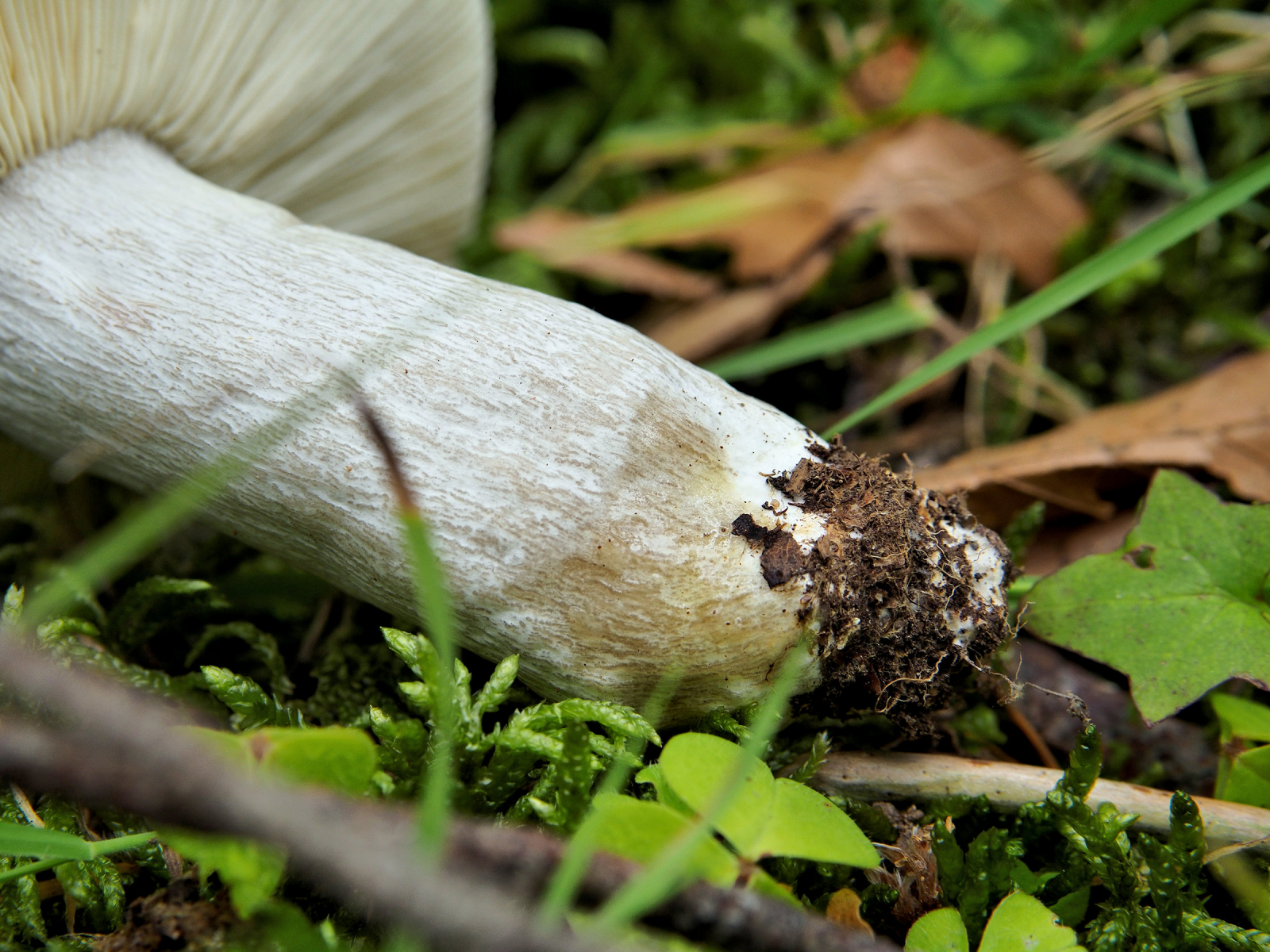 7) stark grauende Stieloberfläche mit gelblicher zugespitzter Basis