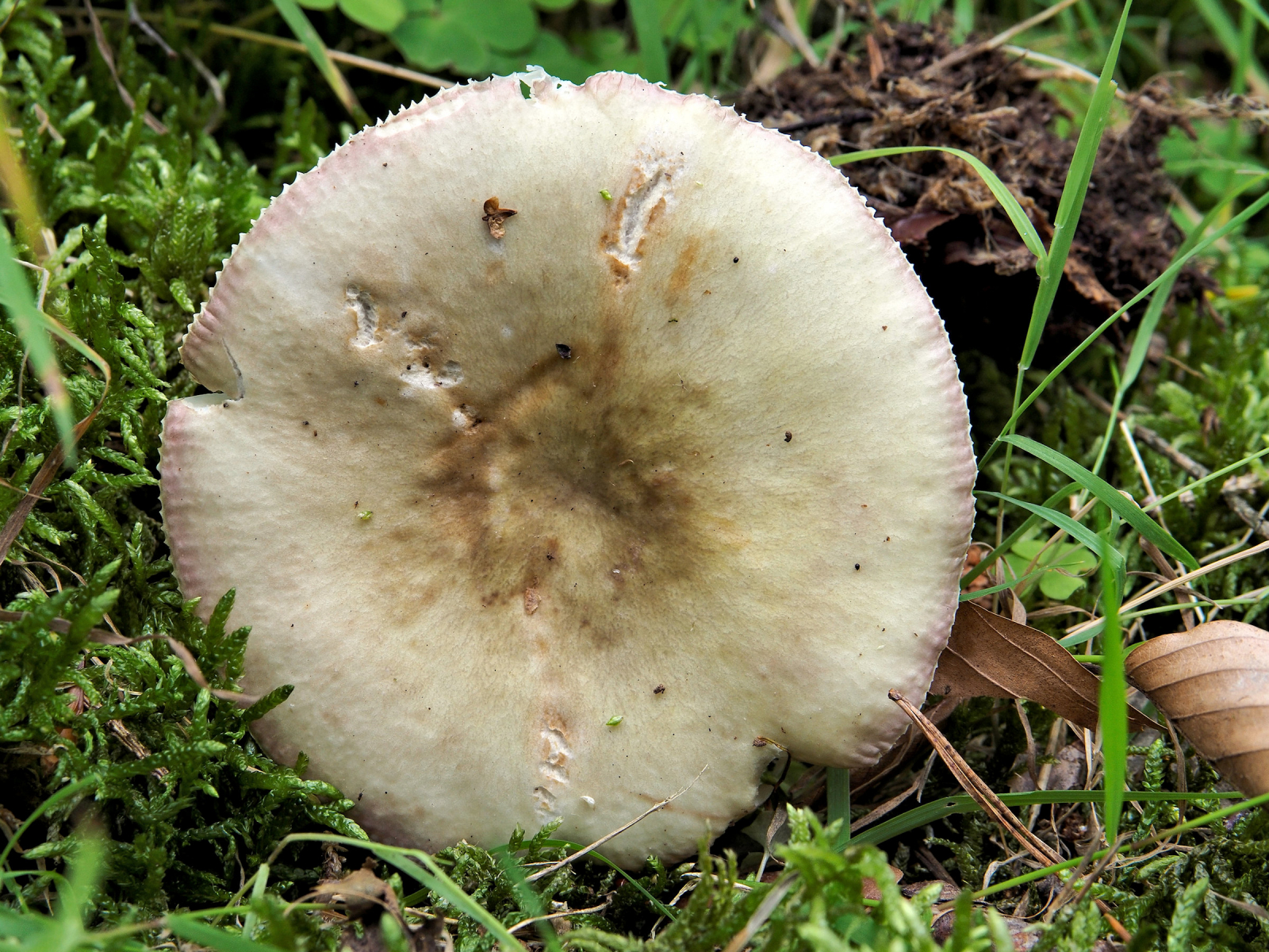 8) markanter rosa Hutrand, blass und die Mitte irgendwie dunkel braun-grün