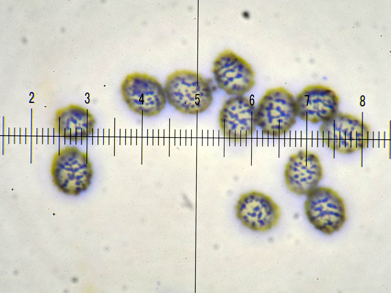 17) Melzer, Sporen teilnetzig, aber auch mit vielen isoliert stehenden Warzen