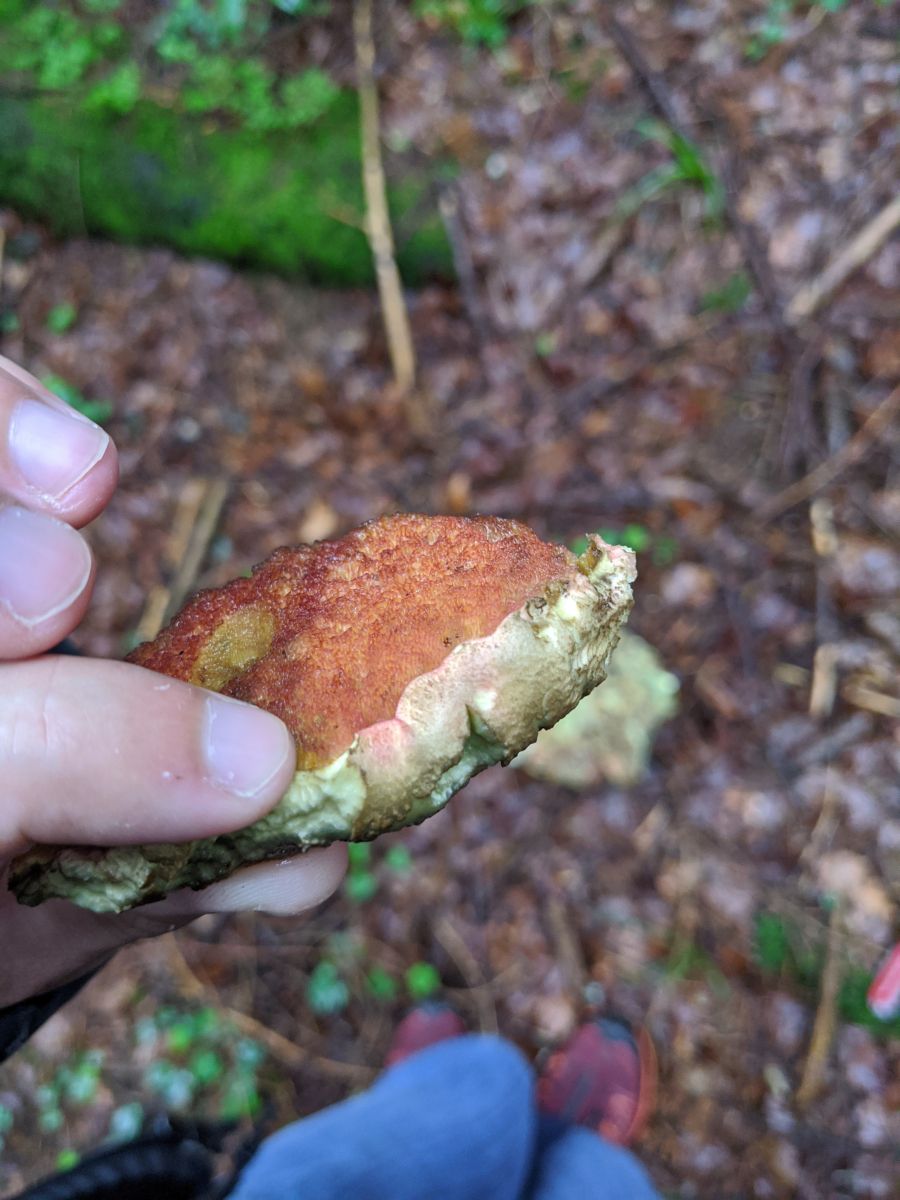 Der Ochsenröhrling (Imperator torosus), der gerne mal mit de Weinroten vergesellschaftet vorkommen soll, dürfte ein ähnlich variables Verhalten besitzen.