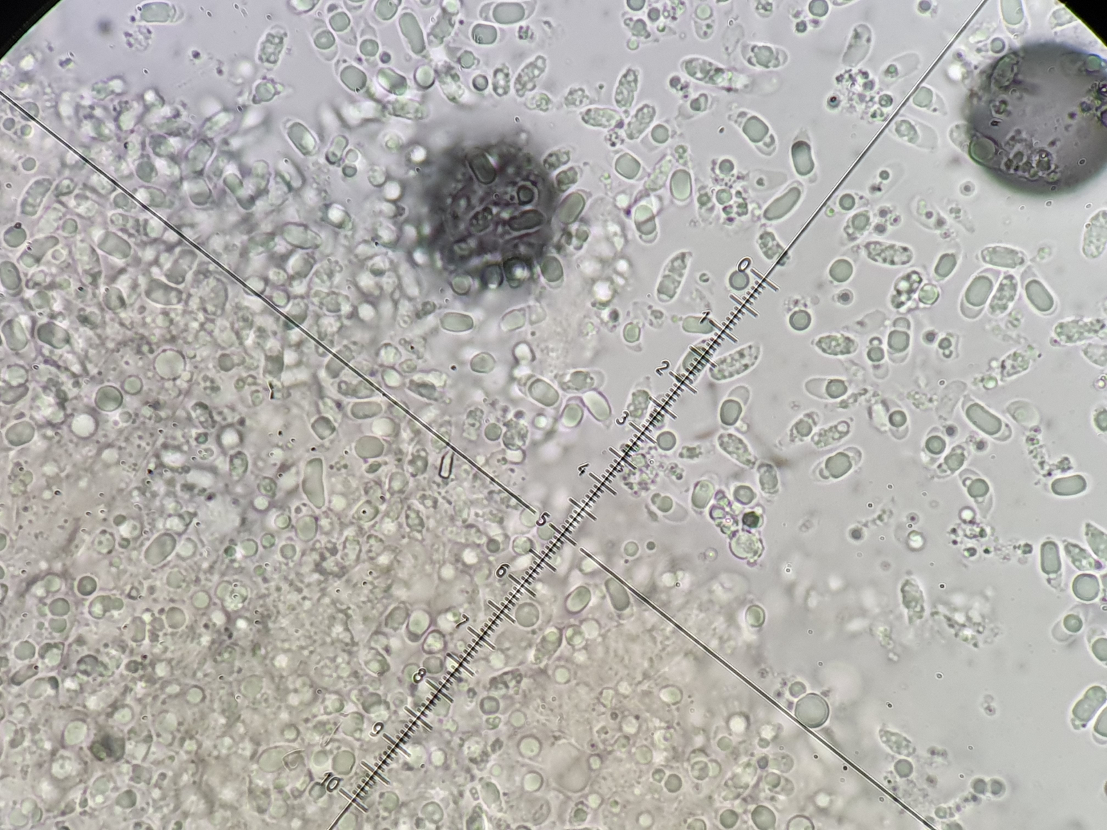 Ich denke das passt so auf jeden Fall. Anbei noch ein Bild, was ich toll fand, weil es fast ein wenig den dreidimensionalen Blick durchs Mikroskop wiedergibt/erahnen lässt. Mit viel gutem Willen und dem Zudrücken aller Hühneraugen lässt sich dort im Gewusel eine ramponierte Basidie erkennen. (Könnte aber alles auch Einbildung sein
