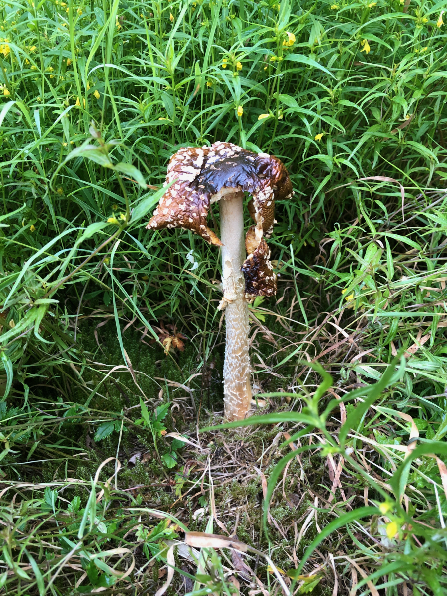 Auf den Indikator folgt auch gleich der Gesuchte. Ein Königsfliegenpilz, in ziemlich unköniglichem Zustand. Den würde ich so nicht mehr verwenden![]()