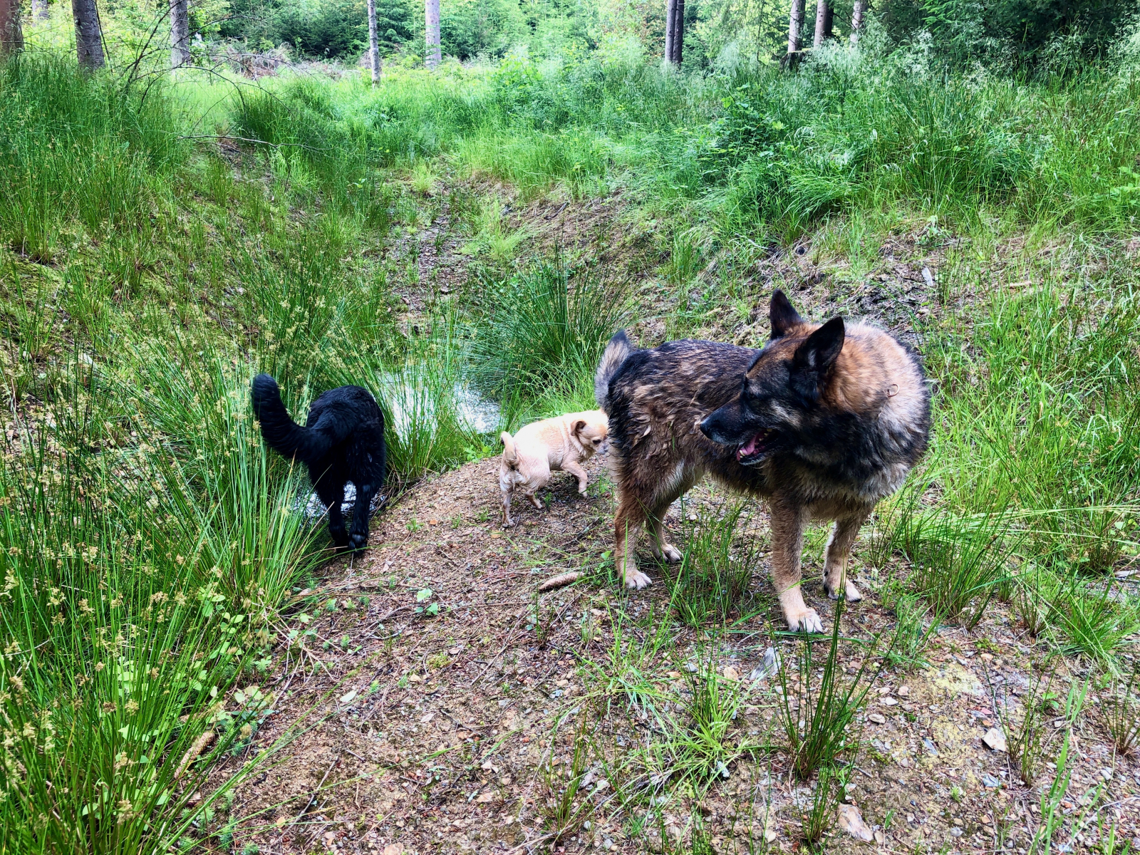Hier ein Bild vom Pilzspürhund im Kreise seiner Lieben, wenn er gerade nicht nach Pilzen spürt.