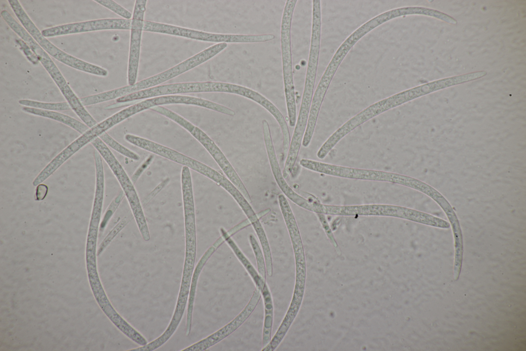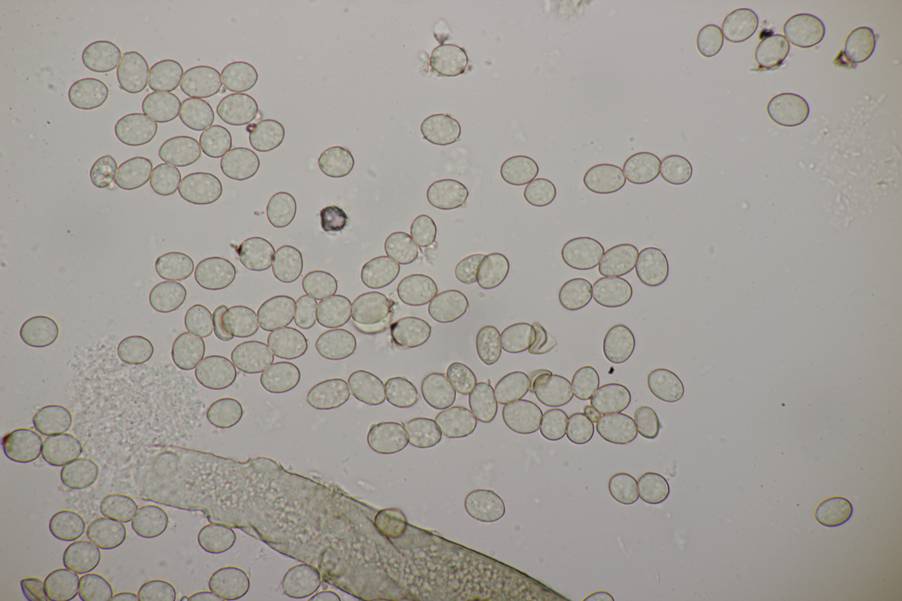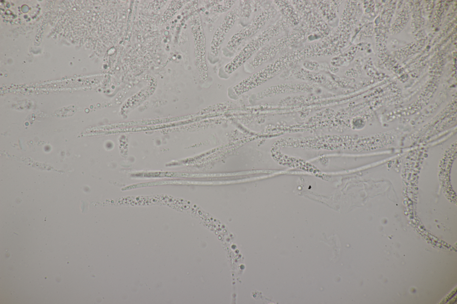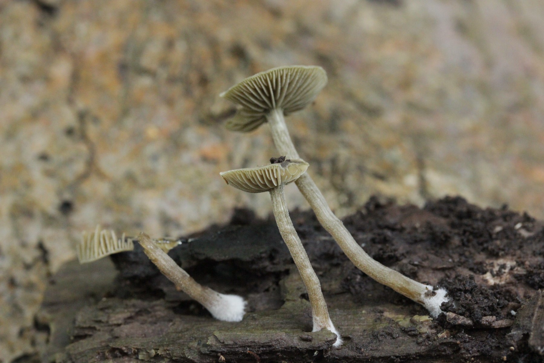 1. Simocybe sp. Leider unterwegs vertrocknet, so daß da im Mikroskop nicht mehr viel zu holen war. Außerdem stellt sich die Frage, womit schlüsseln. Gröger hat Simocybe nicht drin und verweist auf den Ludwig. Funga Nordica hat auf Holz nur 2 Arten...