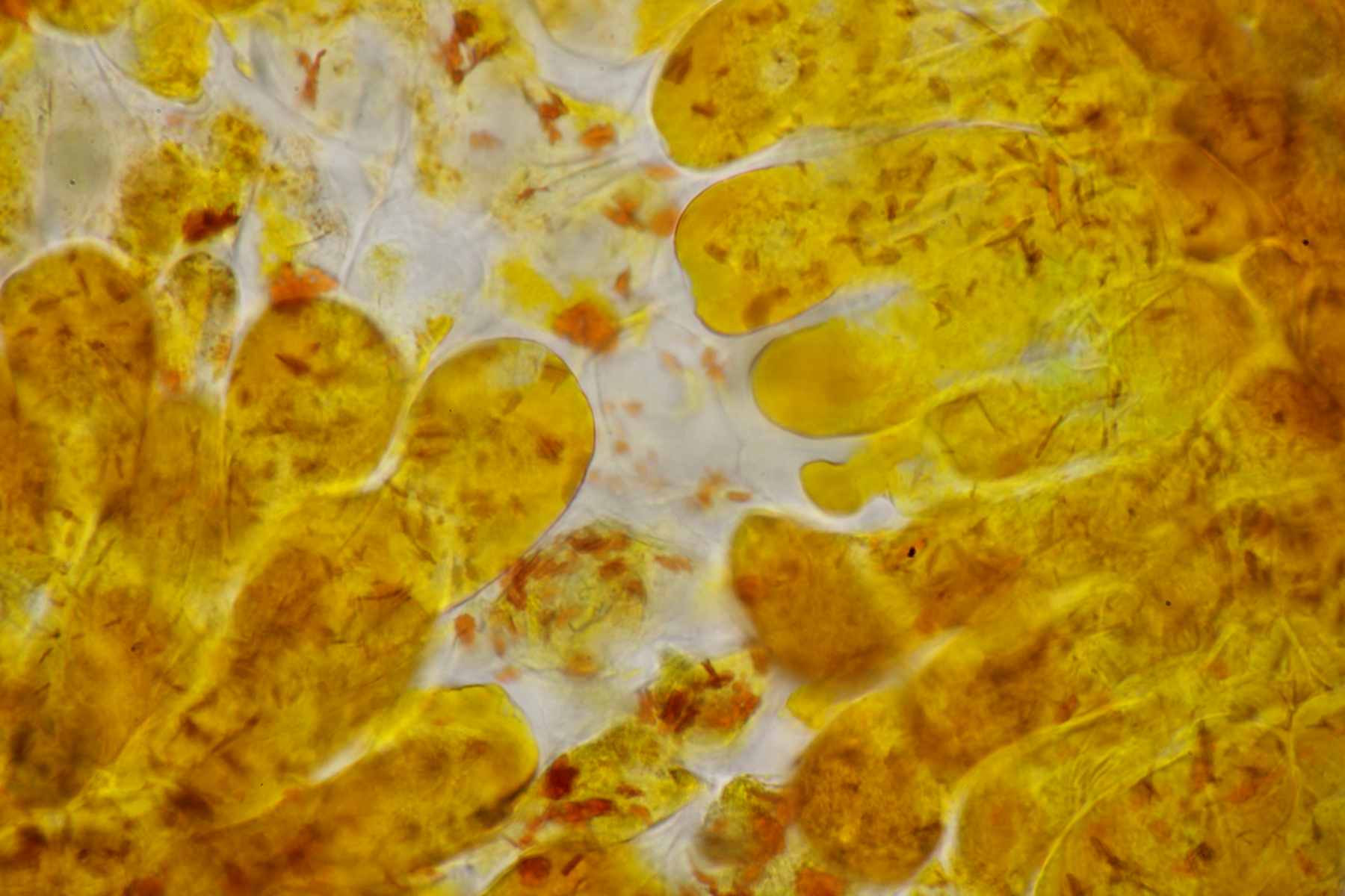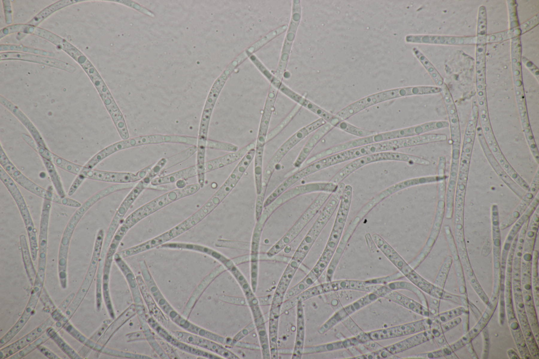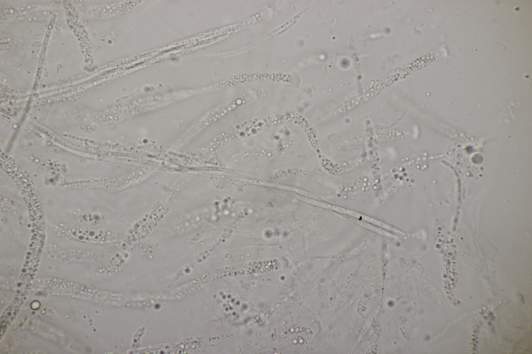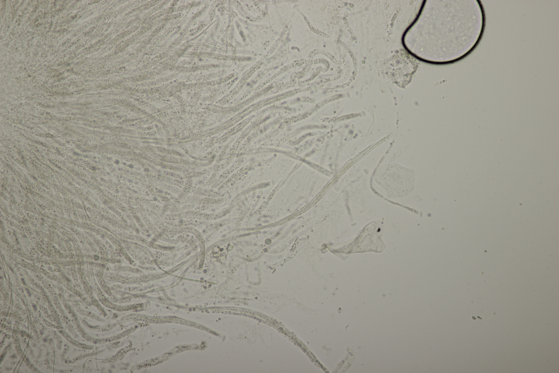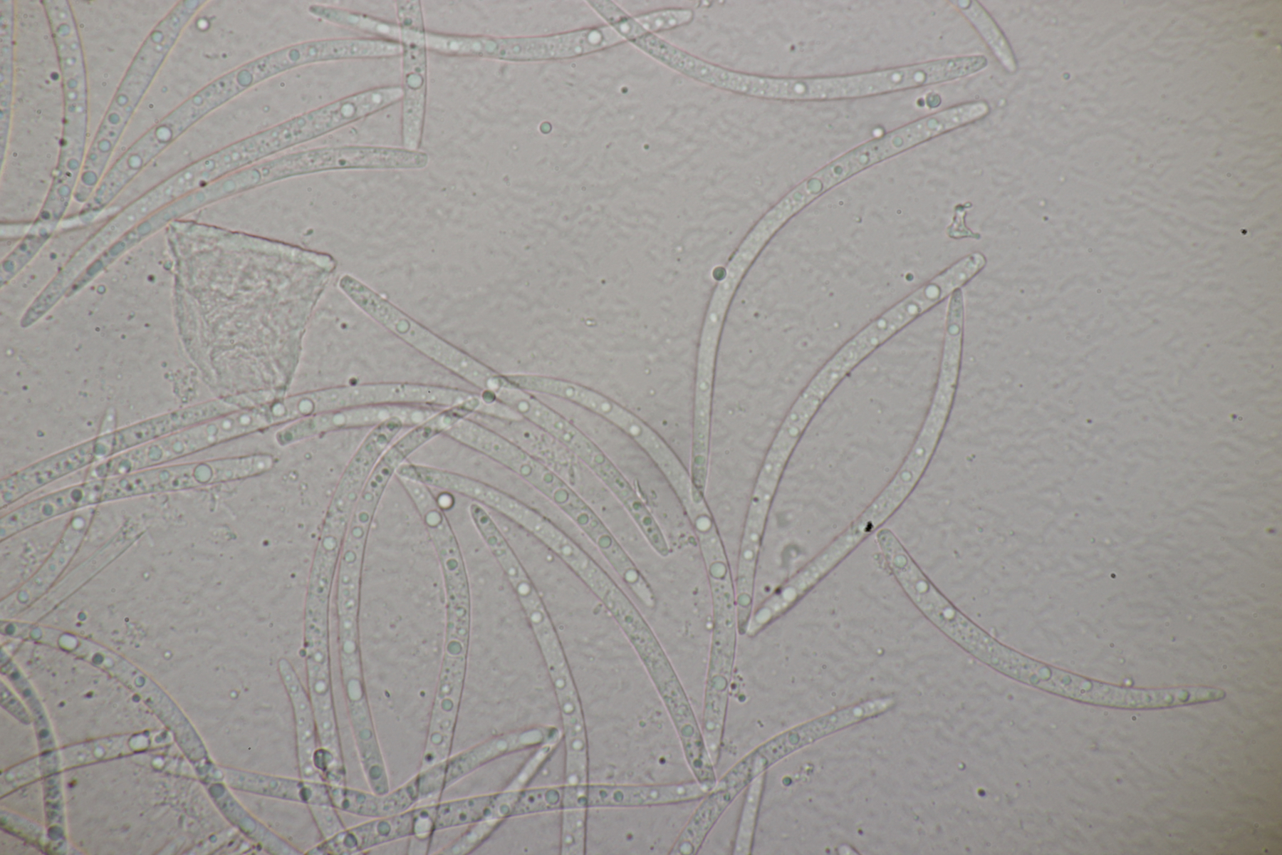 1. Simocybe sp. Leider unterwegs vertrocknet, so daß da im Mikroskop nicht mehr viel zu holen war. Außerdem stellt sich die Frage, womit schlüsseln. Gröger hat Simocybe nicht drin und verweist auf den Ludwig. Funga Nordica hat auf Holz nur 2 Arten...