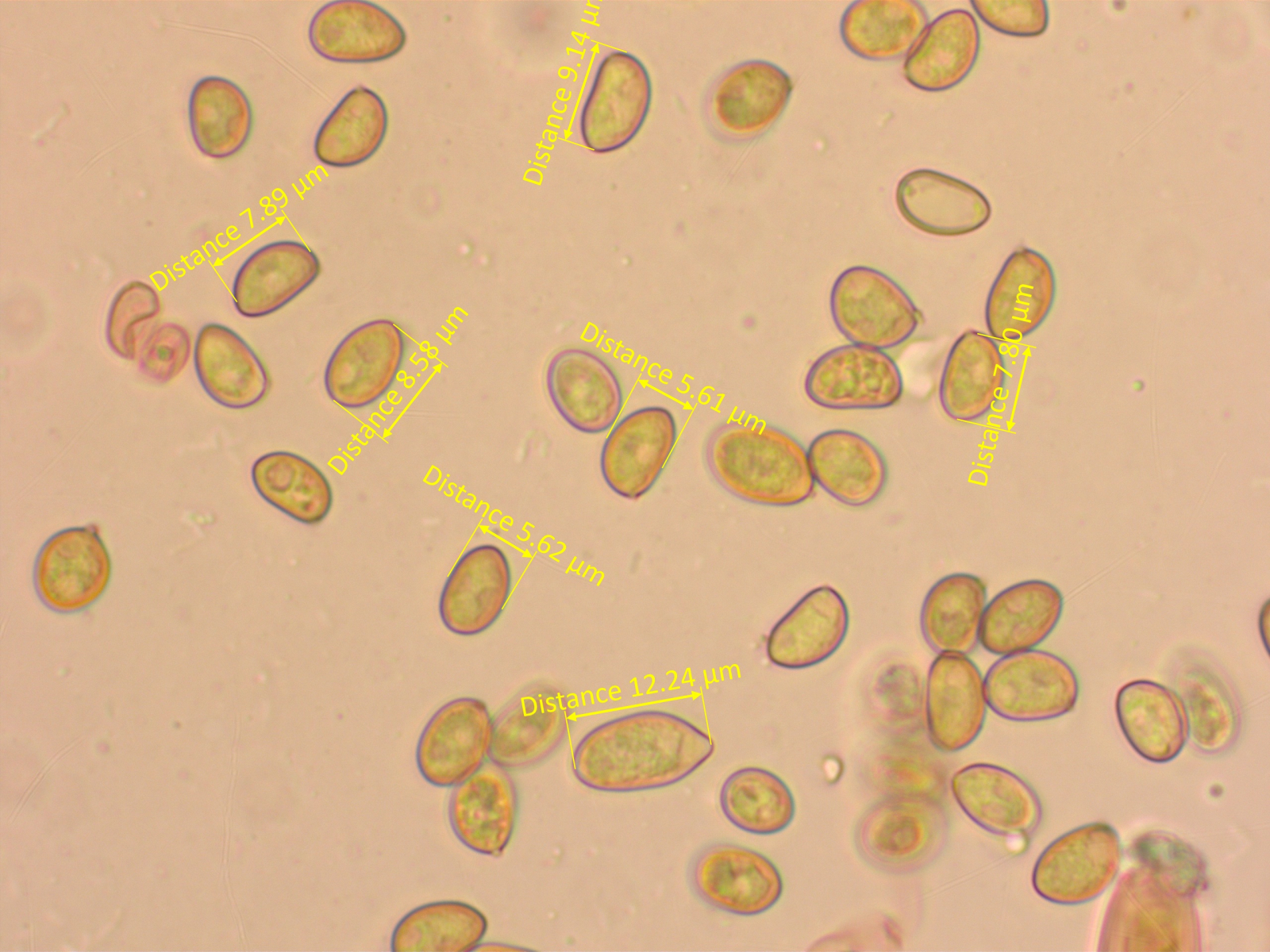 Habe auf meinen Mikrobildern die Sporen nachgemessen.