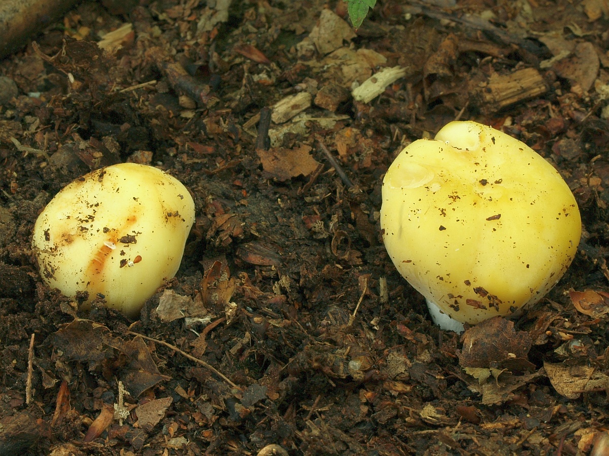 Zwei kleine hellgelbe Exemplare mit mildem Geschmack und irgendwie fischartigem Geruch waren unschwer zu erkennen. Die Art kann jedoch auch (meistens gemischte) violettliche und grüngelbe Hutfarben haben oder mit ausgeblassten Rändern und grüngelber Mitte vorkommen. Oft sind die Stiele teilweise violett überzogen.