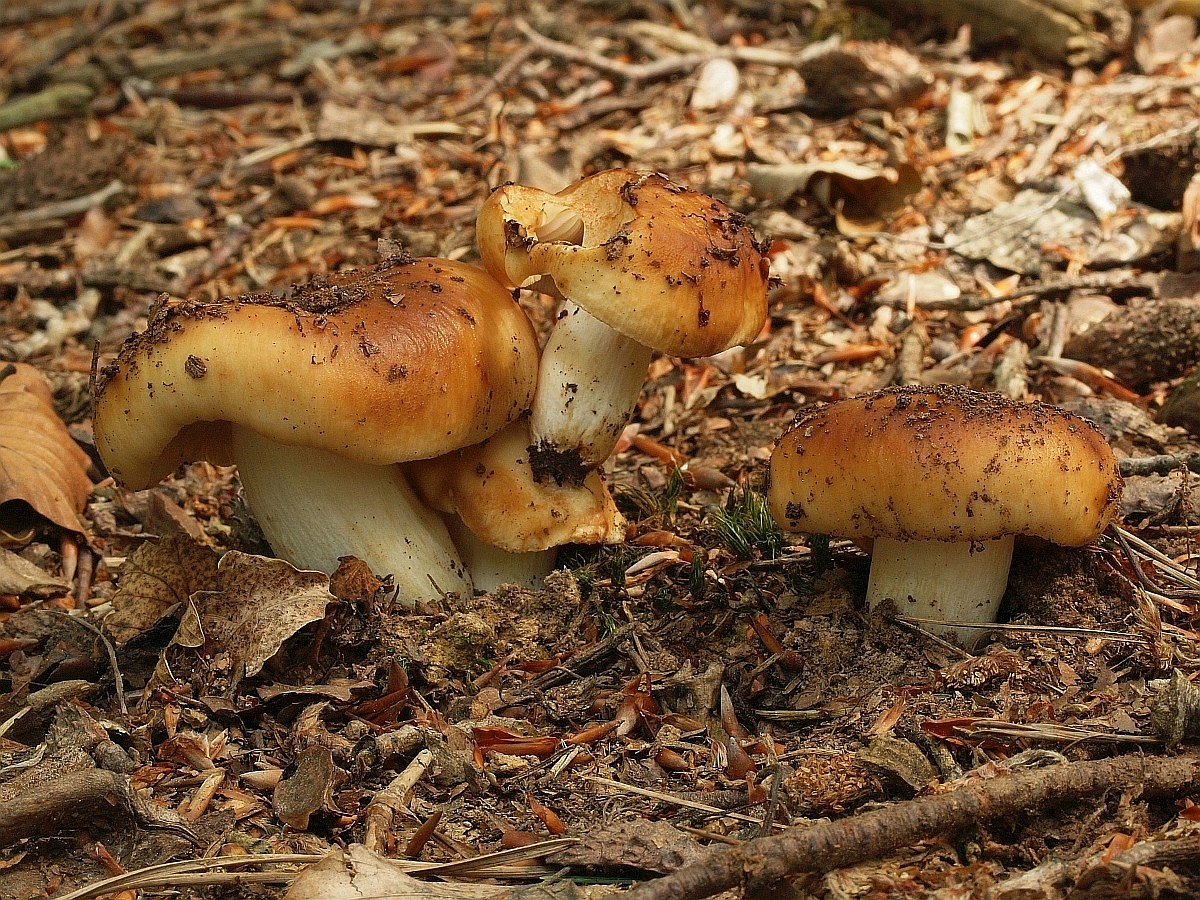Zu erwähnen wäre noch ein einzelner Kurzstieleiger Ledertäubling (Russula curtipes), einer aus der Gruppe um Russula olivacea einige Weißtäublinge aber man kann einfach nicht Alles bearbeiten. Schleißlich gab es ja auch noch Röhrlinge und ein Bisschen was Anderes, denen vielleicht noch ein zweiter Teil des Wochenendes gewidmet wird. Wir traten jedenfalls sehr zufrieden den Heimweg an.