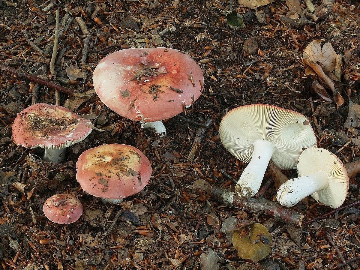 Weitere rote Täublinge, die einem das Leben nicht gerade erleichterten, waren vereinzelt der Ockerblättriger Zinnobertäubling (Russula pseudointegra) und ein nicht näher untersuchter, scharfer Weißsporer.