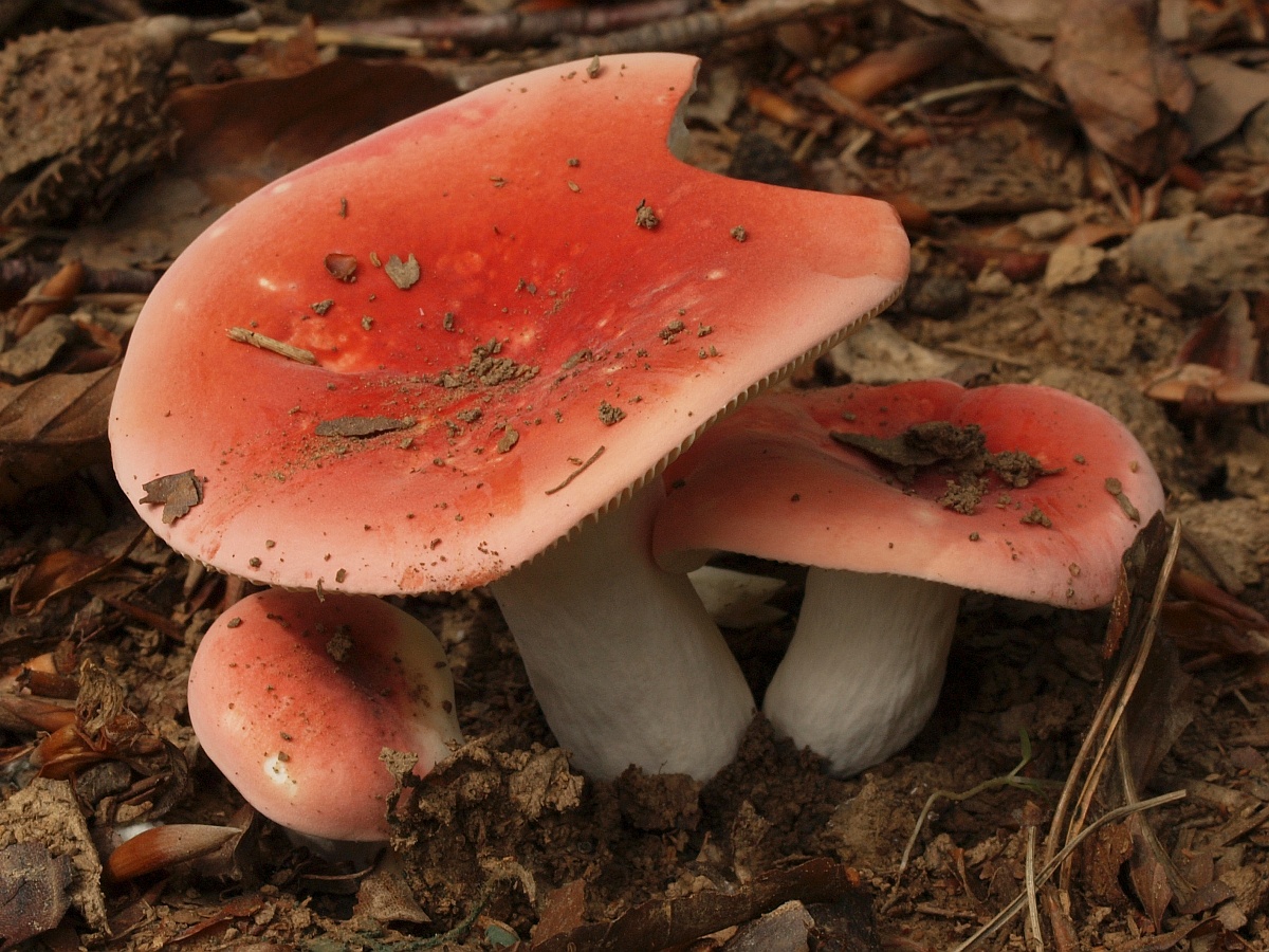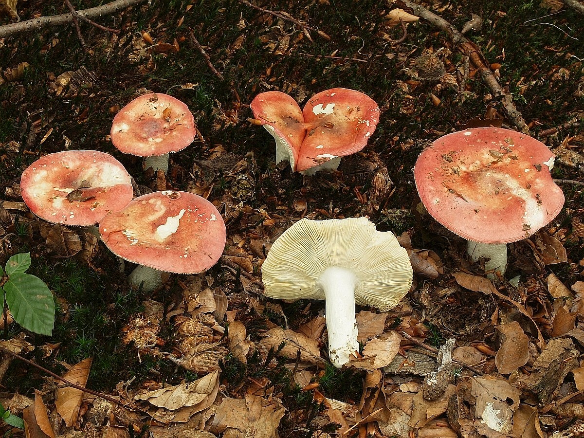 Weitere rote Täublinge, die einem das Leben nicht gerade erleichterten, waren vereinzelt der Ockerblättriger Zinnobertäubling (Russula pseudointegra) und ein nicht näher untersuchter, scharfer Weißsporer.