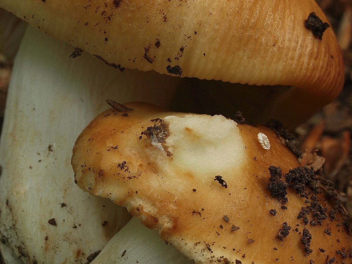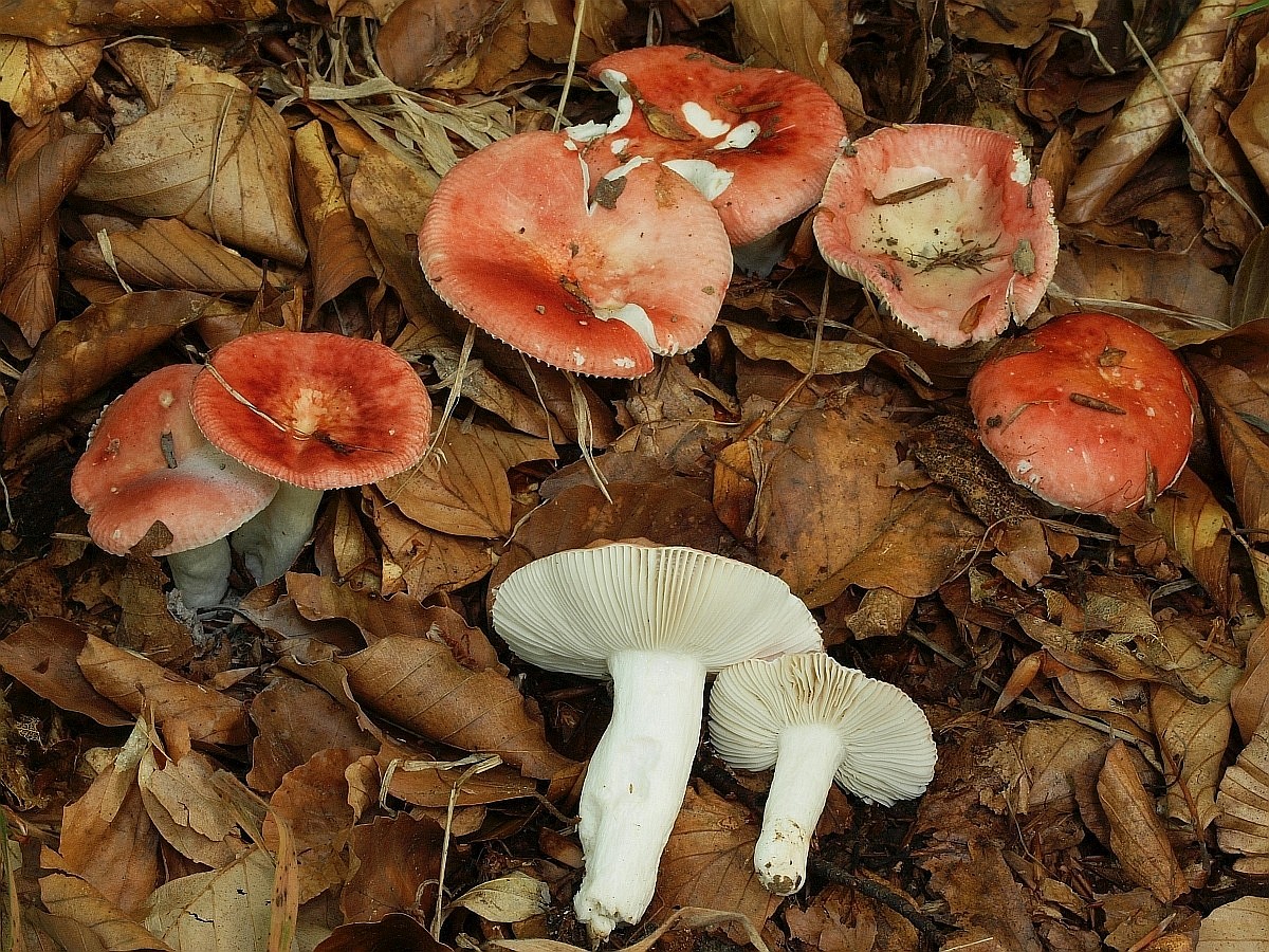 Weitere rote Täublinge, die einem das Leben nicht gerade erleichterten, waren vereinzelt der Ockerblättriger Zinnobertäubling (Russula pseudointegra) und ein nicht näher untersuchter, scharfer Weißsporer.