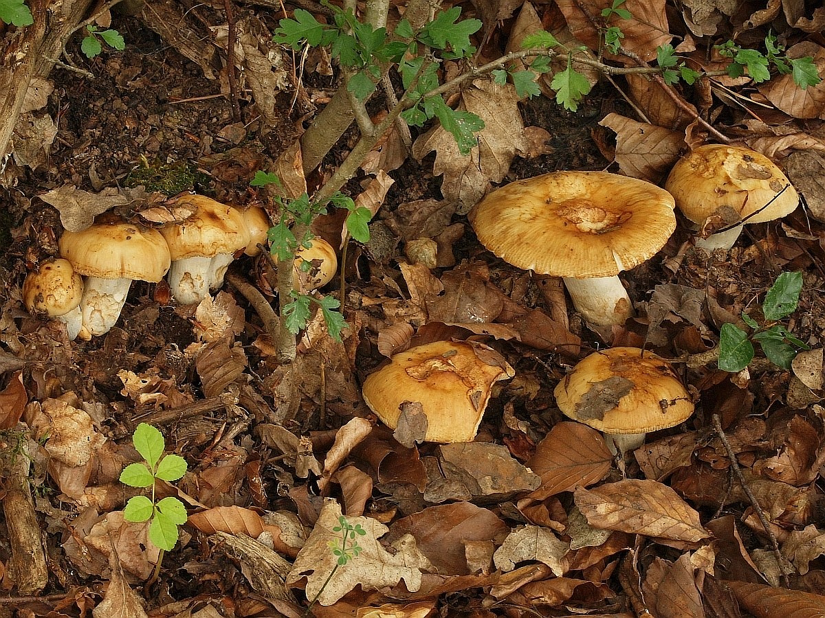 Weitere Arten an diesem Tag waren meist Einzelexemplare oder von Schnecken besuchte Fruchtörper und daher ohne Fotos. Frauentäubling (R. cyanoxantha), Papageientäubling (R. ionochlora). Wechselfarbige Dotter-Täubling (R. risigallina), Ockerblättriger Zinnobertäubling (R. pseudointegra) der bereits gezeigte Braune Camembert-Täubling (Russula amoenolens) und Russula cuprea agg.