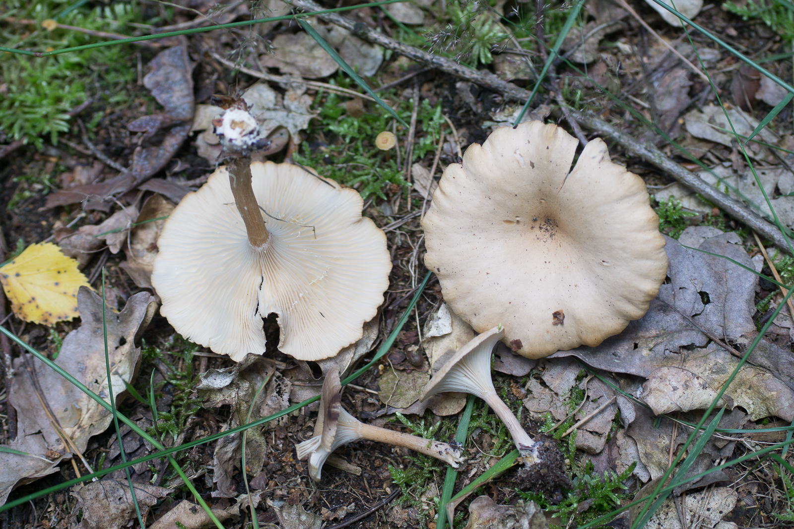 1. Infundibulicybe gibba oder I. costata? Ich habe Probleme die auseinander zu halten. Kein süßlicher Geruch für mich wahrnehmbar. Stiel jung in Lamellenfarbe, alt dann aber deutlich dunkler.