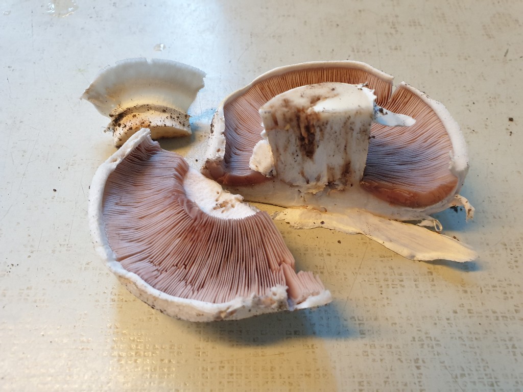 Geschmack: intensiv champignonartig, mit deutlich mehr Aroma als gekaufte Champignons. Leider waren beide Exemplare trotz des jungen Alters schon stark von Maden befallen, weshalb nur kleine Stückchen zur Roh-Verkostung übrig blieben.
