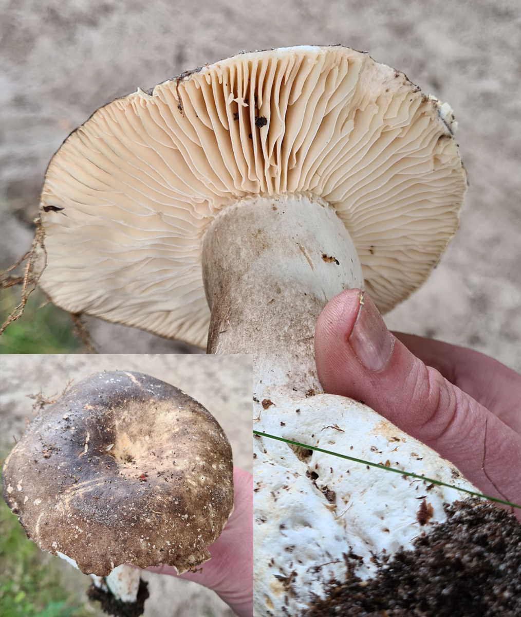 da Du den Pilz nicht mitgenommen hast löse ich einmal auf. Du hast den Dickblättrigen Schwarztäubling gefunden. Wir hatten gehofft dass Du mit einem Schnittbild (Verfärbung), wie der Stiel bricht und dem streichen über die Lamellen (Sprödblättler) selbst auf die Gattung und die Art gekommen wärst.