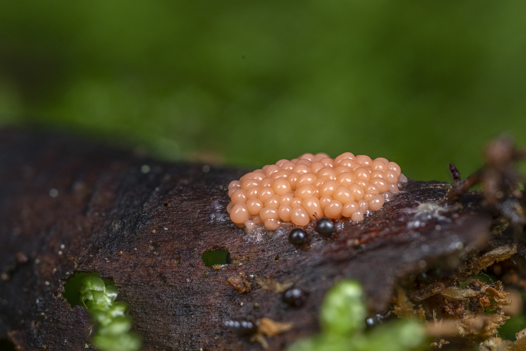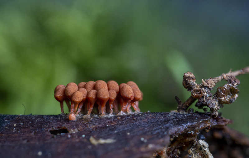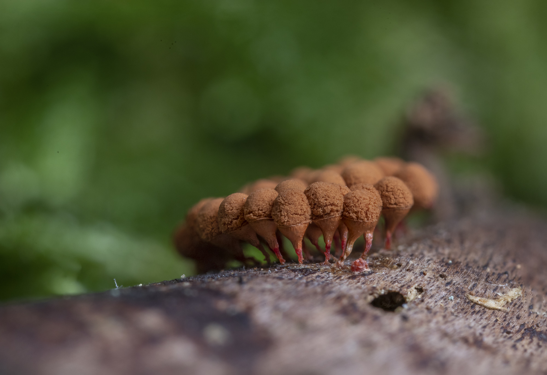 Am nächsten Tag waren die 4 zurückgelassenen Sporokarpiengruppen verschwunden (es gibt viele Tiere, die sich Schleimpilze schmecken lassen).