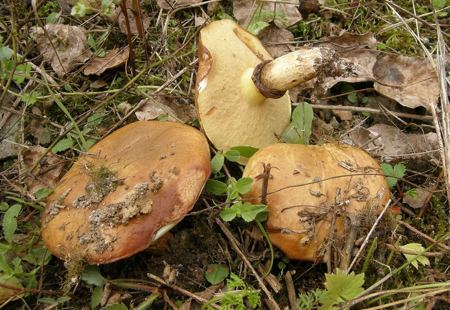 Nummer 19 hat einen Ring ist vermutlich mit einer Lärche in der Nähe Suillus grevillei. Für Suillus luteus ist die Hutfarbe zu hell. Für den würde wiederum der Standort unter Kiefern sprechen.