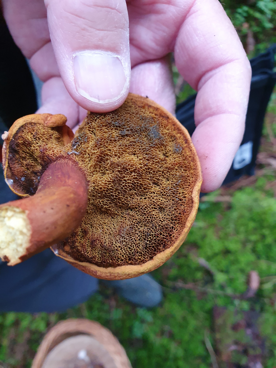 Diesen Pilz hatten wir letzten September gefunden und nicht direkt zuordnen können. Daher verblieb er erstmal unter "unbekanntem Röhrling" auf meiner Festplatte...