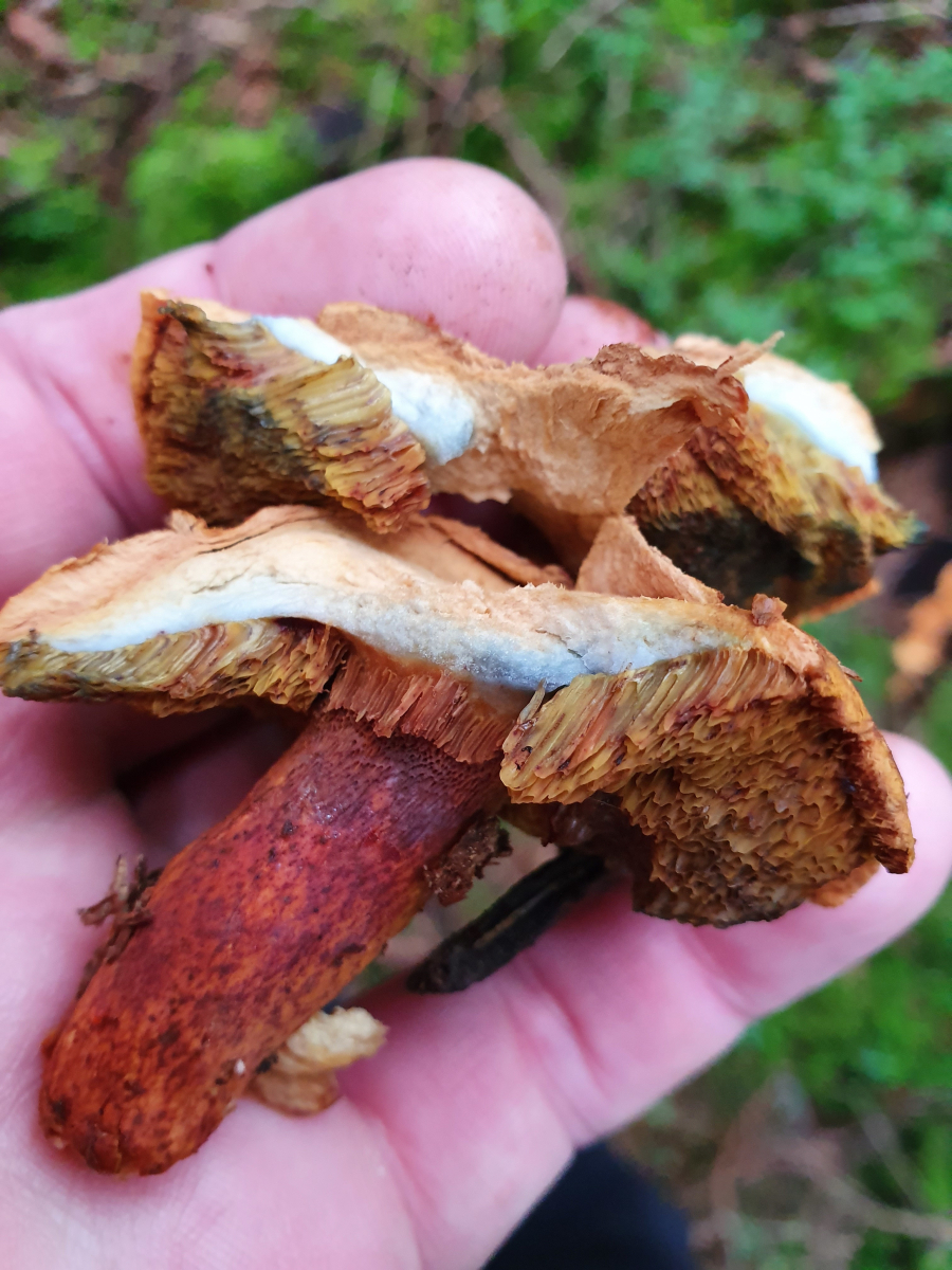 - Der Pilz erinnerte uns zuerst an einen Pfefferröhrling. Ein Geschmackstest offenbarte aber (so glaube ich mich zu erinnern) keine Schärfe.