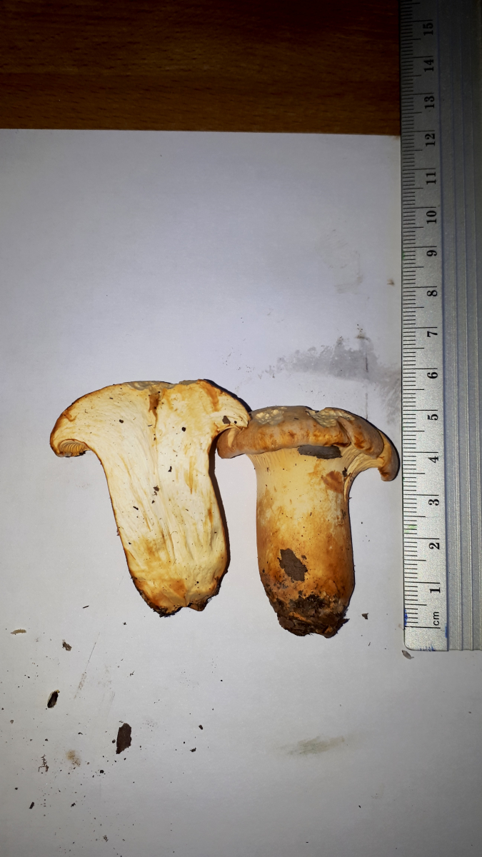 • Bin ganz bei Werner, der Pfifferling ist nicht untypisch. Hatte letzte Woche solche mit ebenfalls blassem Hut. Die standen auf einem sonnigen Platz, waren auch noch sehr jung und standen ca. 2 Tage in der Sonne.