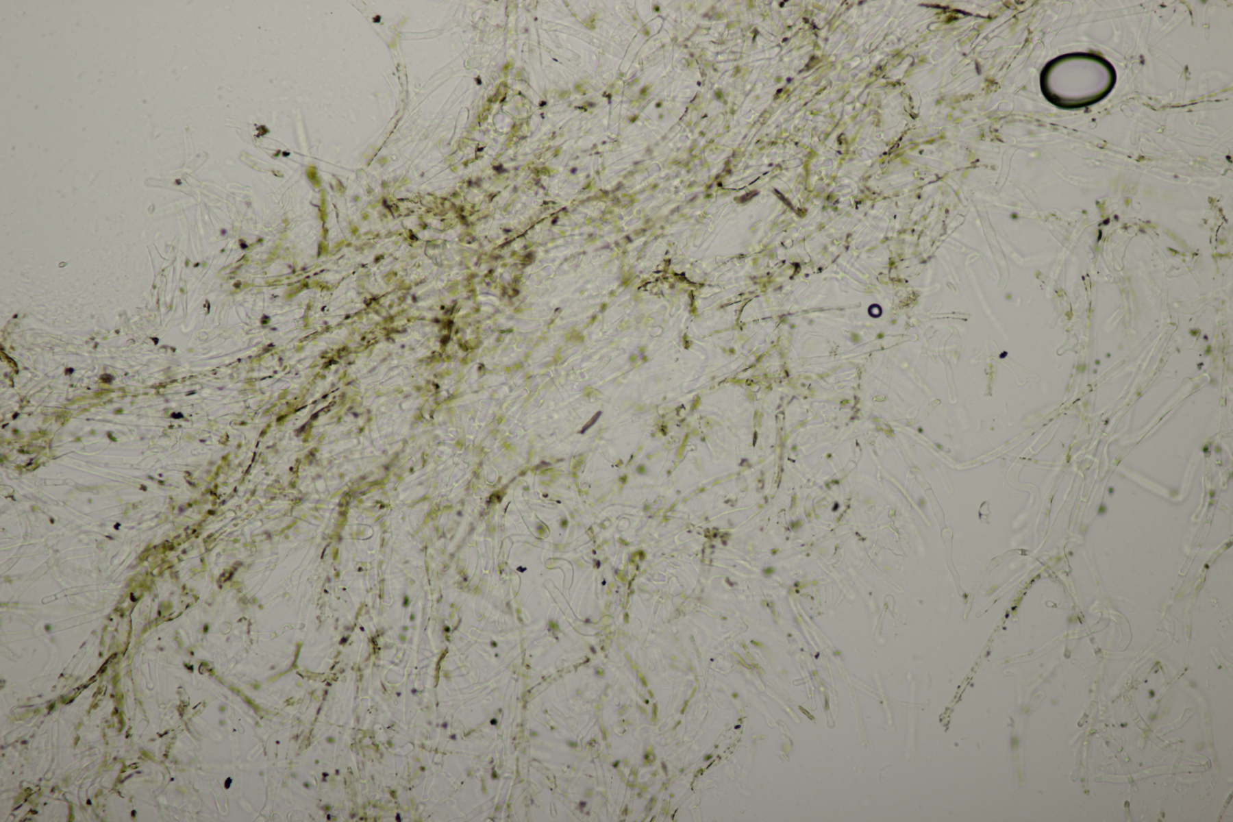 11. Steccherinum fimbriatum. Vor Ort wirkte der deutlich weniger grün...