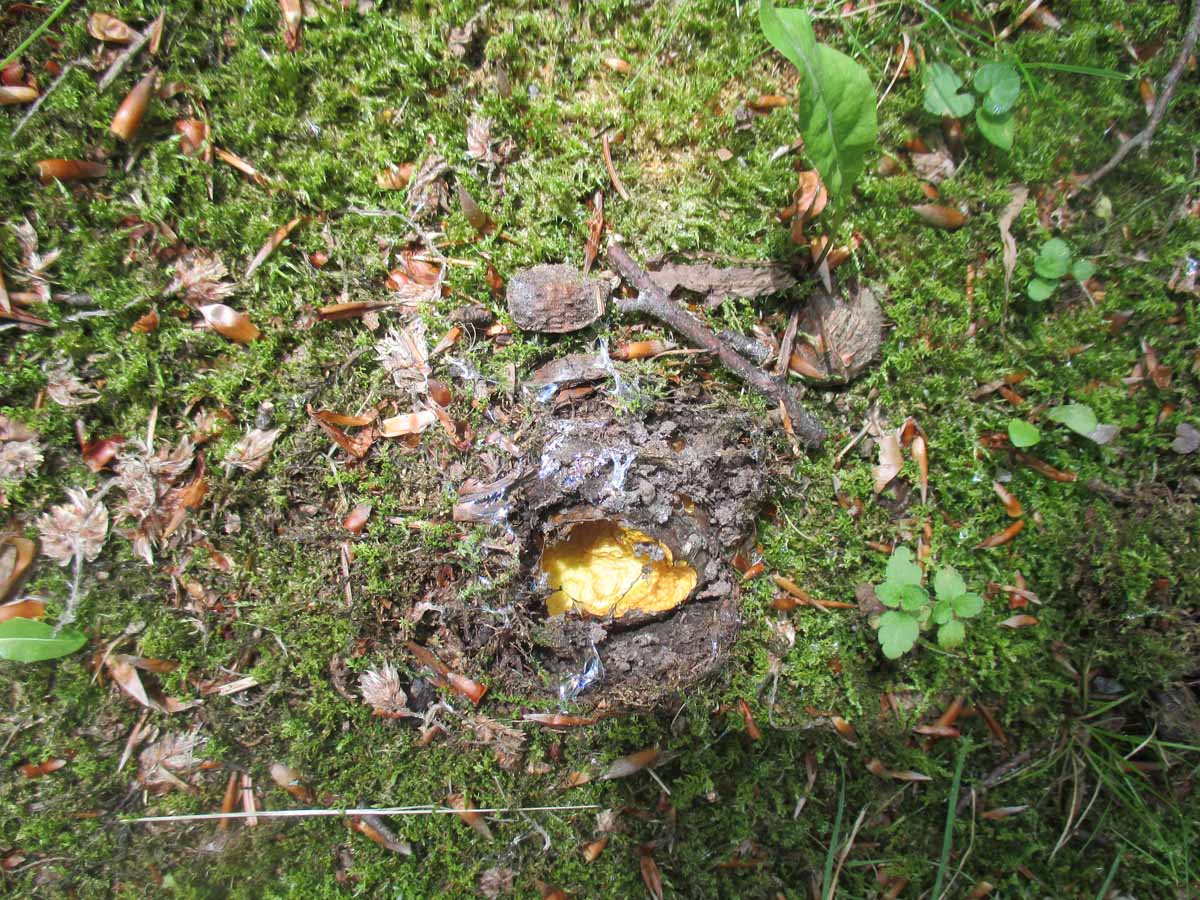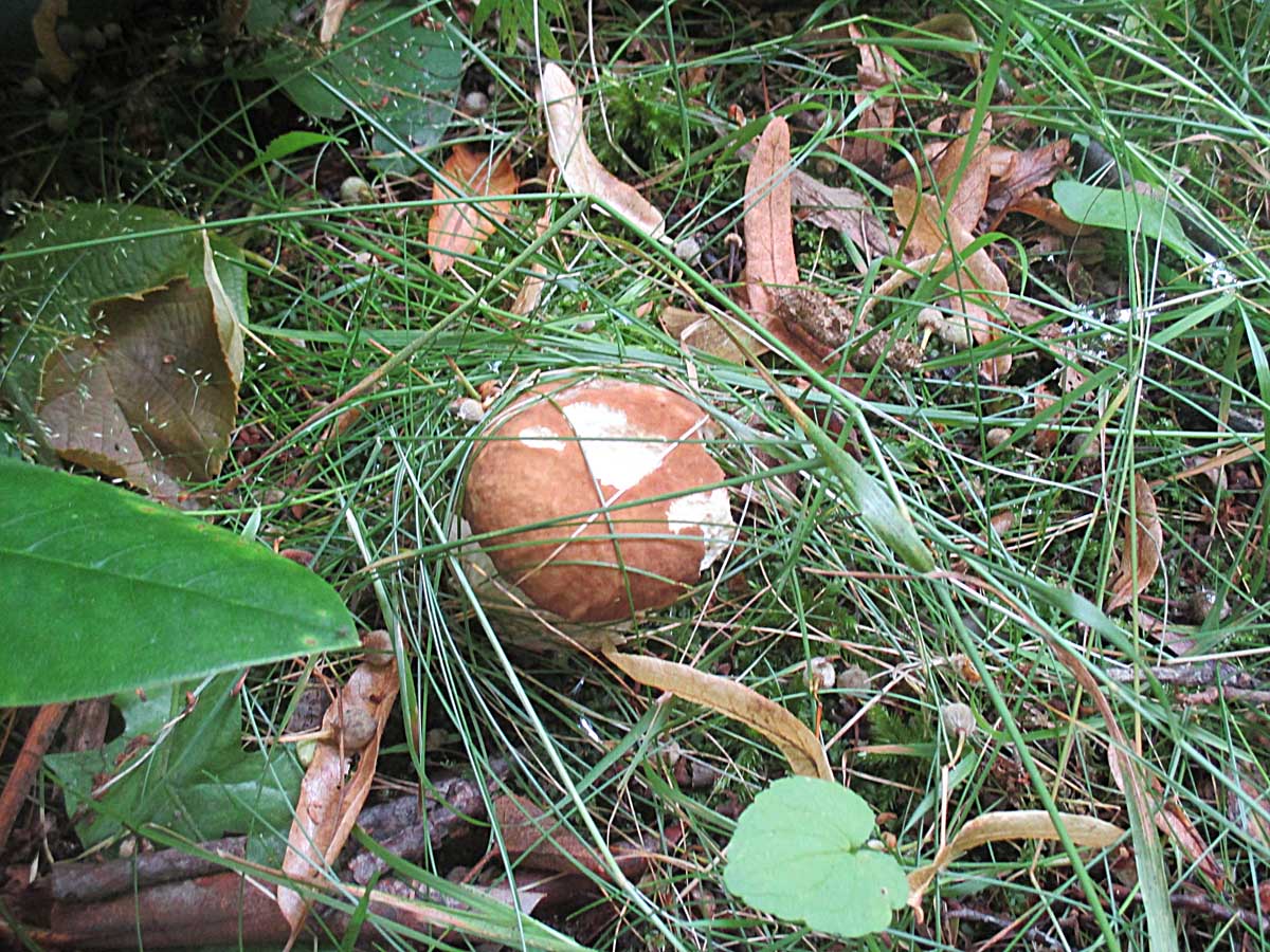 Dieser junge Anhängselröhrling wurde leider schon von Schnecken ausgehöhlt