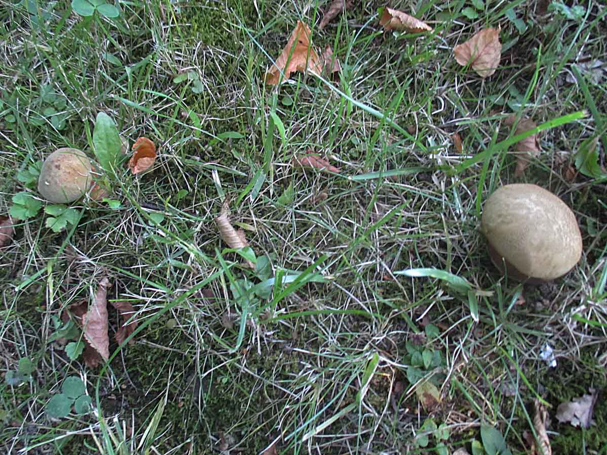 Wieso die drei Riesenboviste sich bei diesem Wetter hervortrauen verstehe ich nicht. Die werden nie groß.