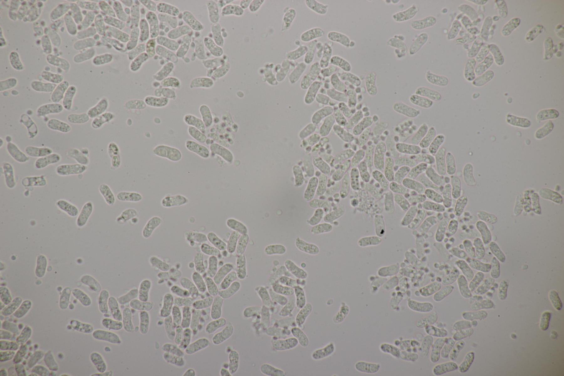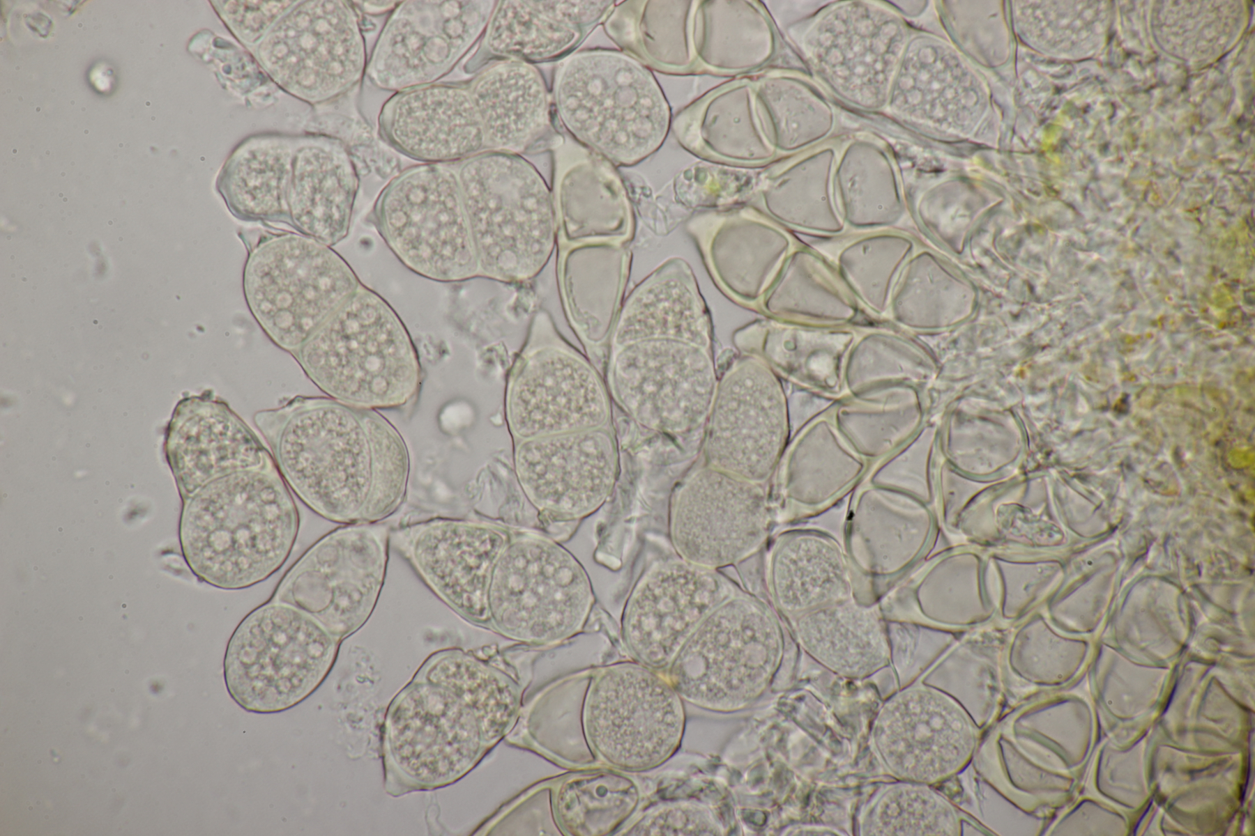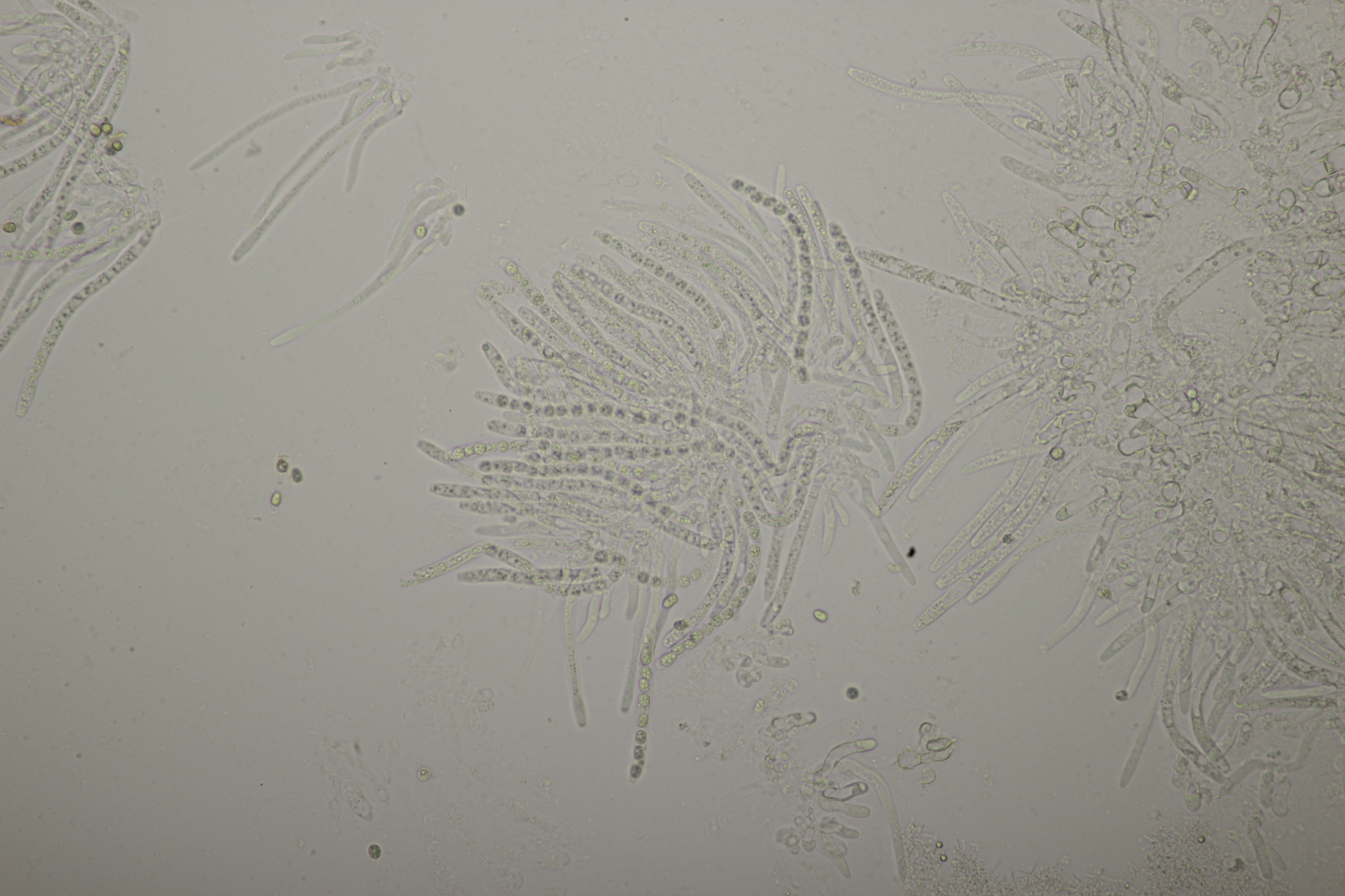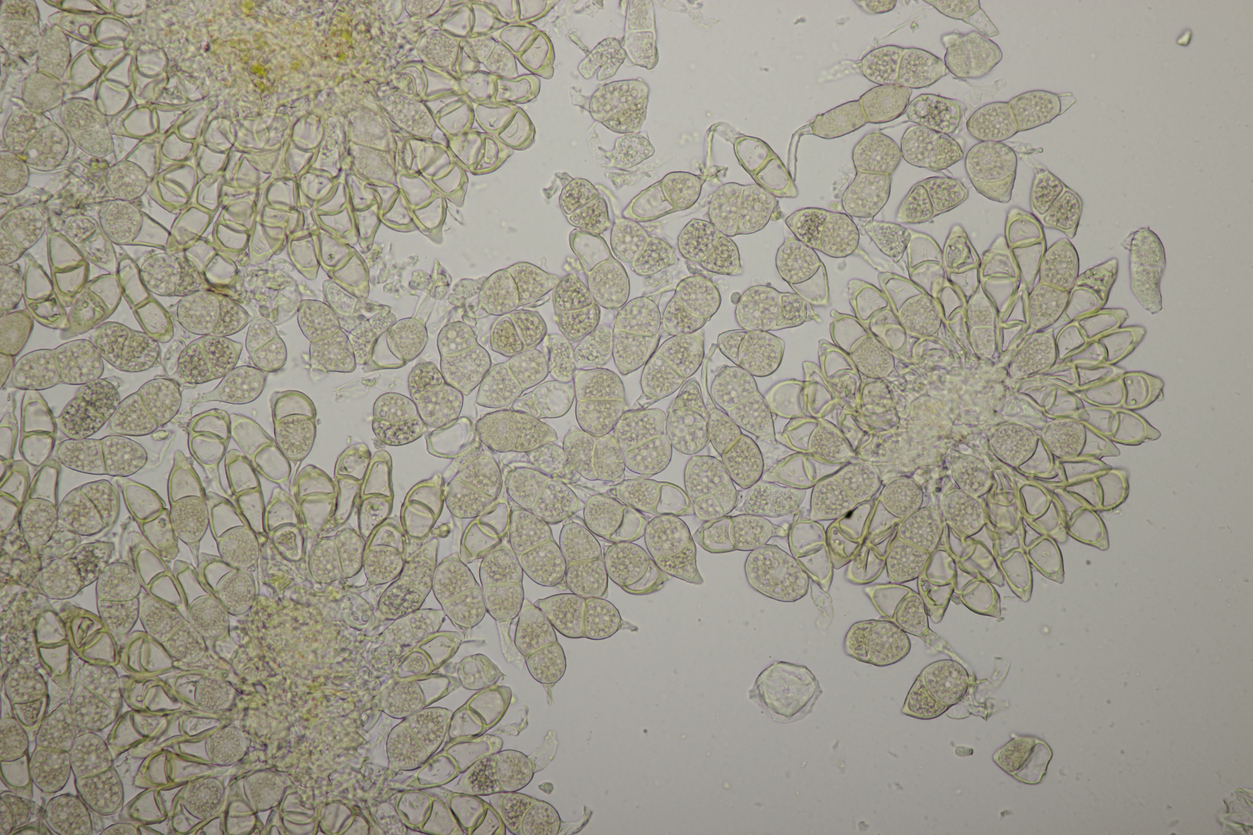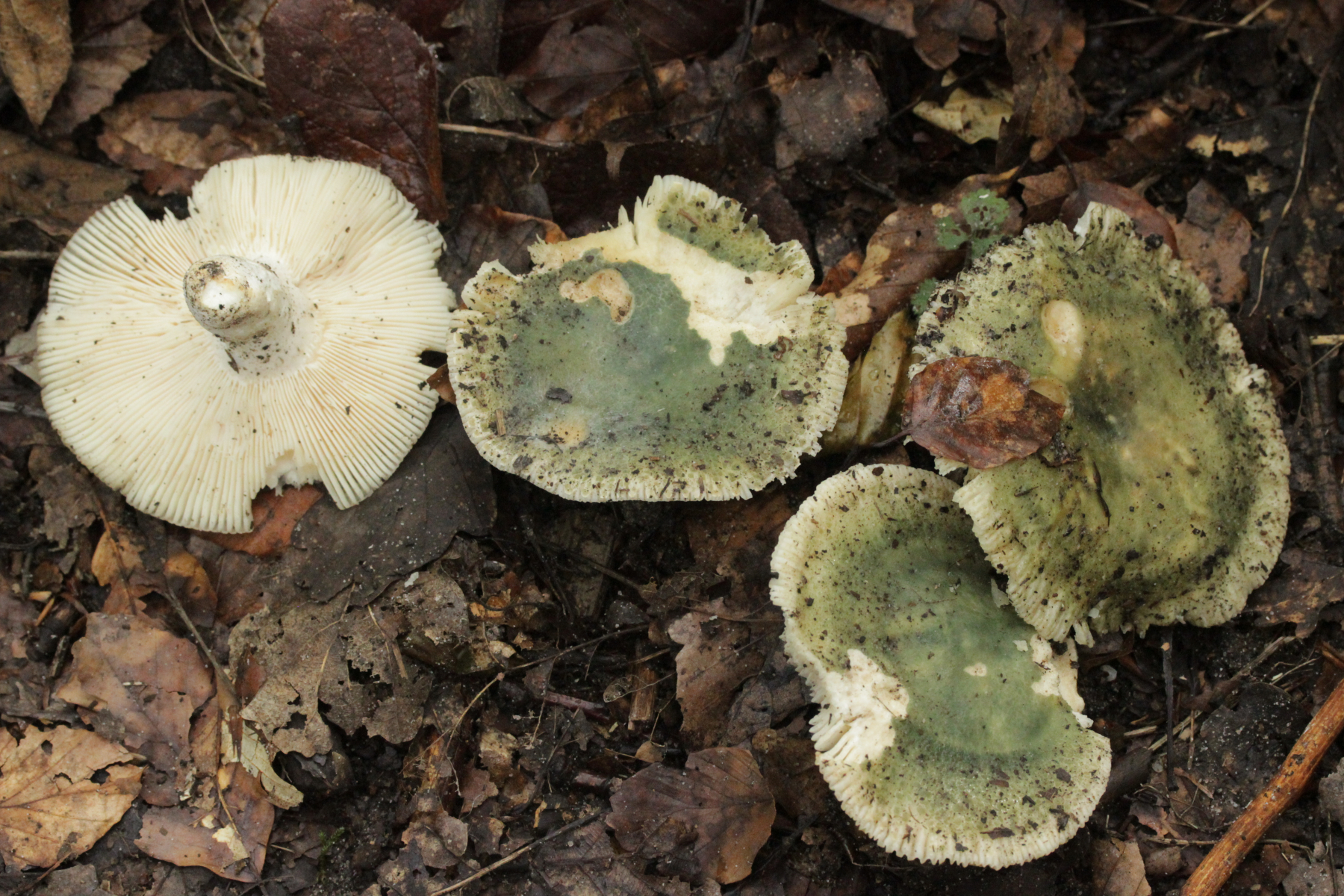 2. Russula virescens. Sporenpulver IIa, schnelle und intensive Reaktion mit Guajak, orange mit Eisensulfat, Begleitbäume Fagus und Quercus