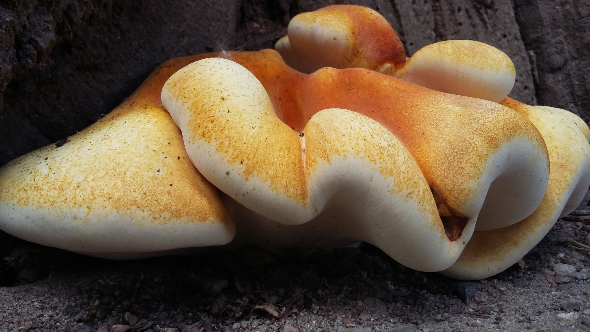 Und weil er jetzt noch schöner ist als damals und er ja nicht so häufig ist, gibt es jetzt noch einmal Bilder vom Fruchtkörper am Stammfuß der gleichen alten Eiche ....