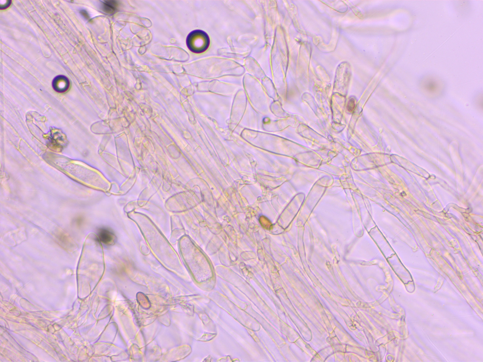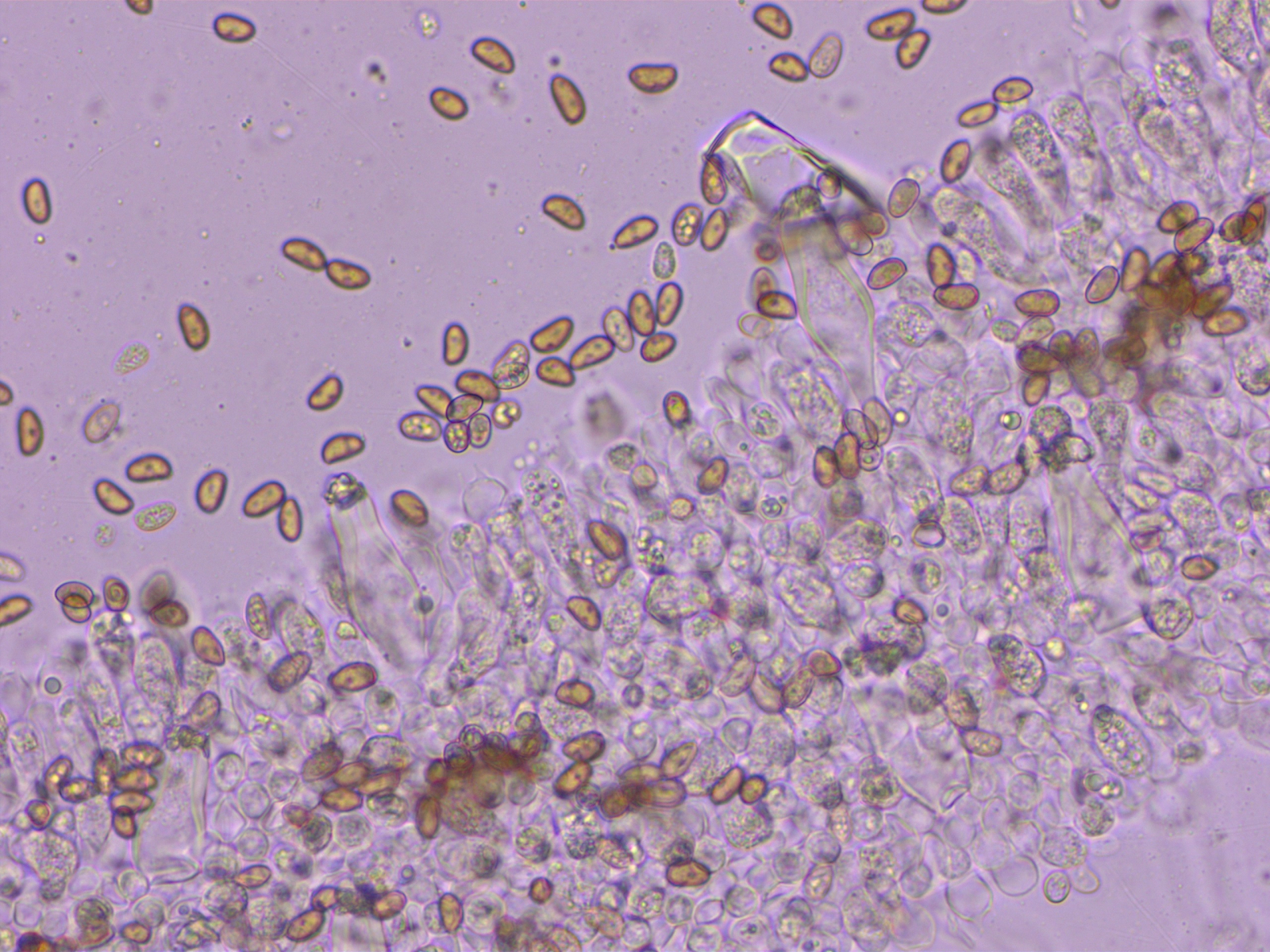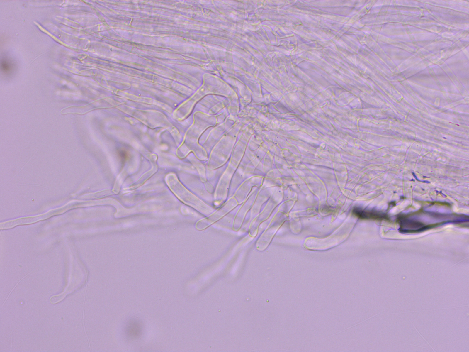 - Kaulozystiden teilweise metuloid, nur an der obersten Stielspitze vorhanden