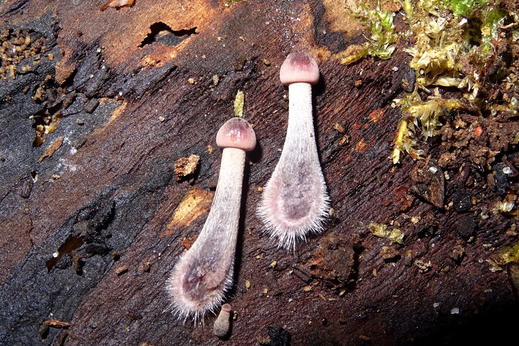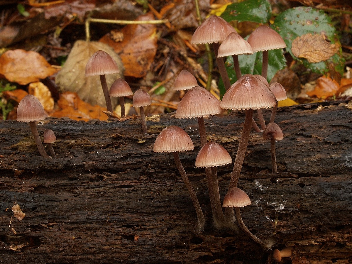 der Matthias hat ja schon geschrieben, dass das noch Babys sind. Ich könnt mir vorstellen, dass sich daraus Bluthelmlinge, Mycena haematopus, entwickeln. Die würden dann bei Verletzung eine purpurrote Flüssigkeit absondern.