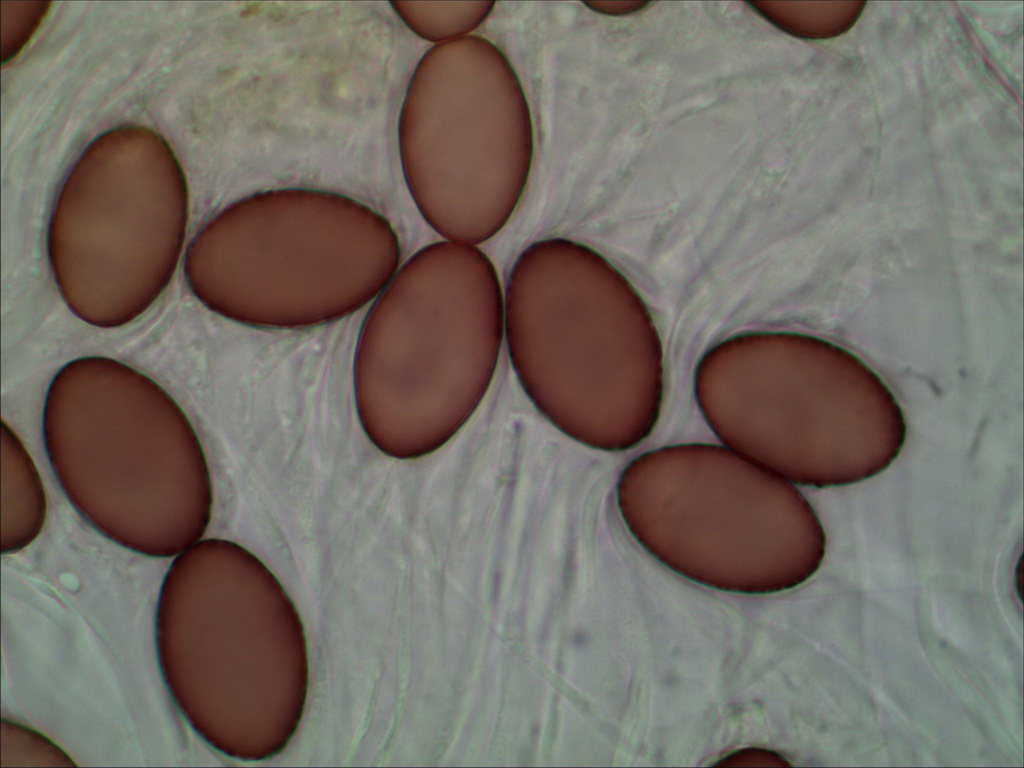 Funde ohne diese pigmentfreie Zone mit gleichmäßigen Warzen, bestimmt als A. stictoideus, hatten u.a. Sporen von 27-32 x 16-18,5.