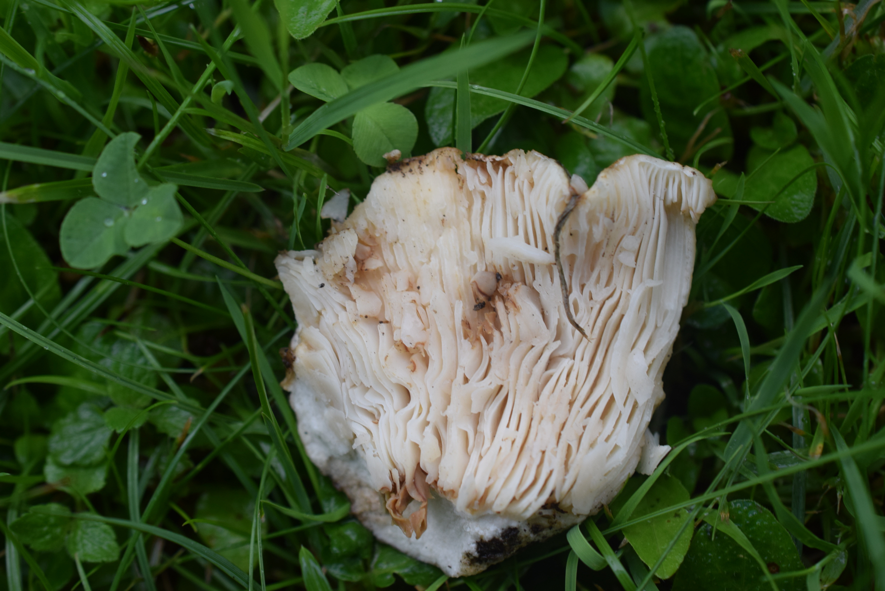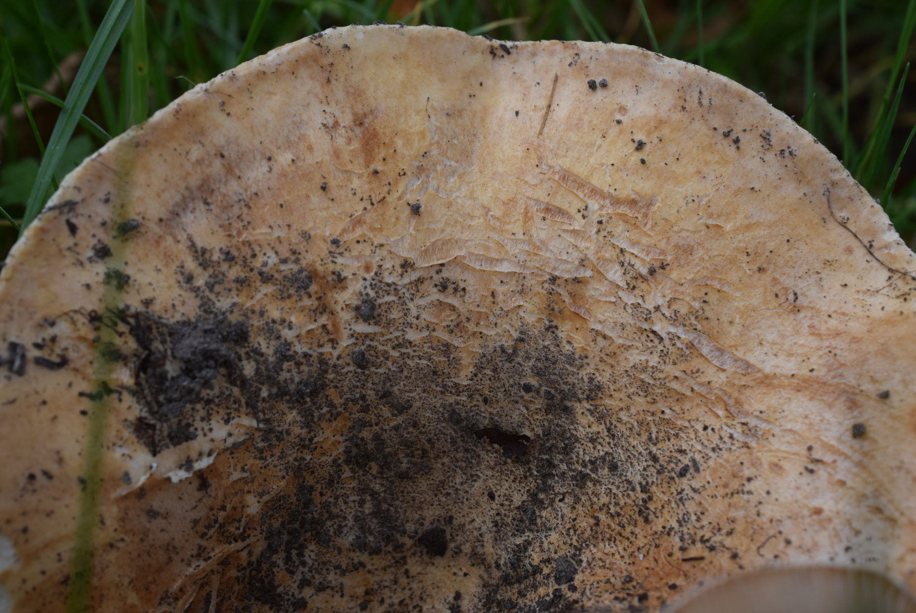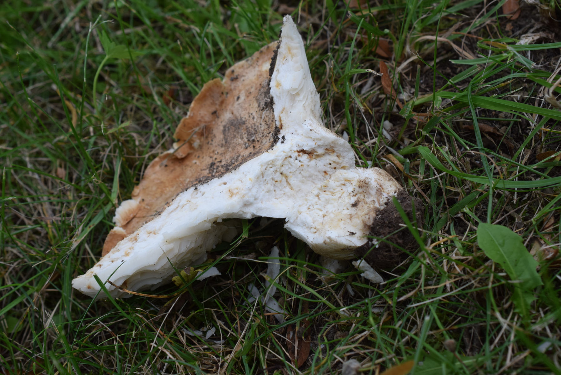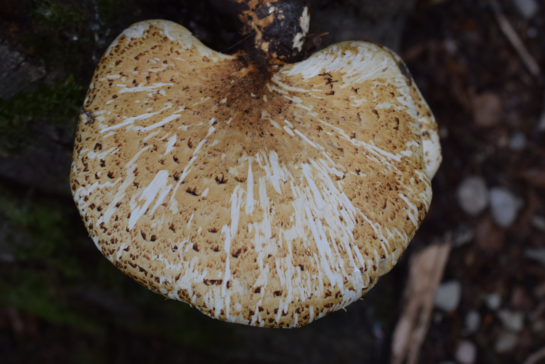 Polyporus squamosus Hutoberfläche von Schnecke gefressen