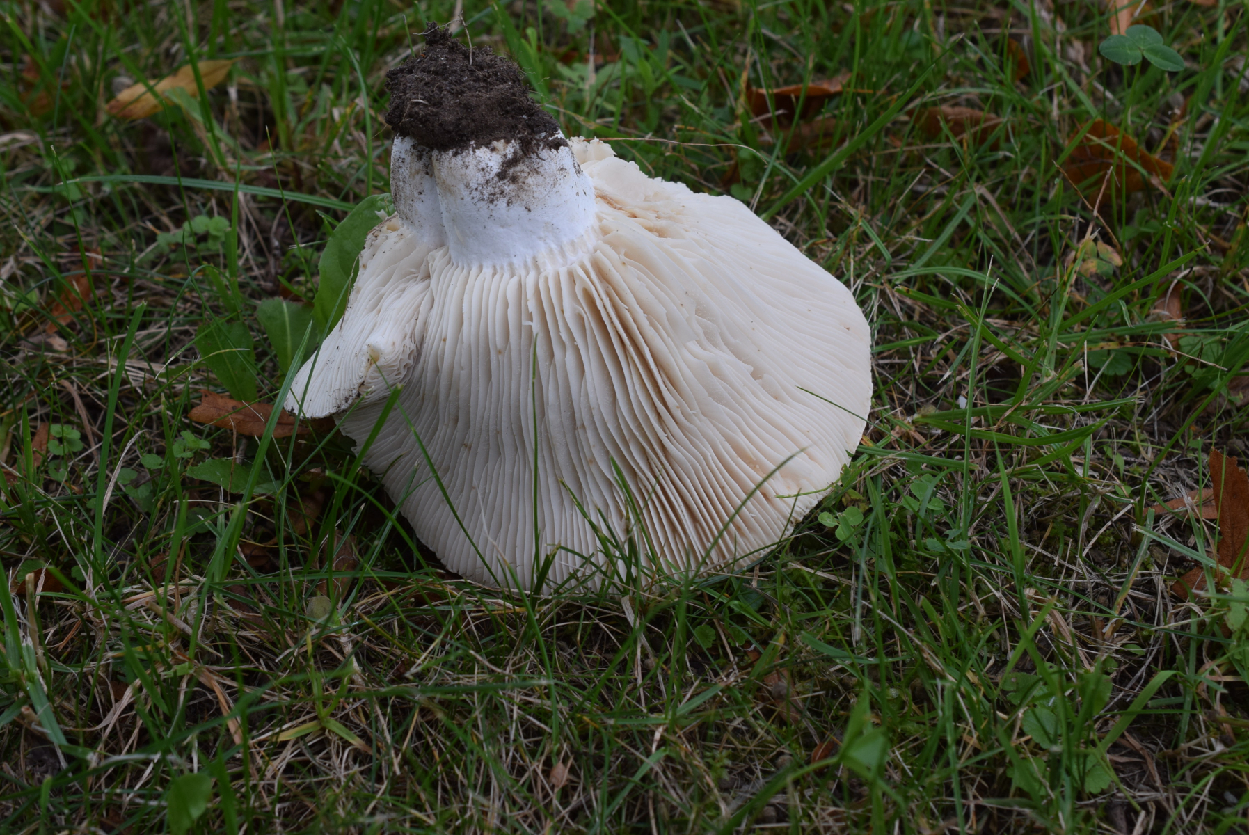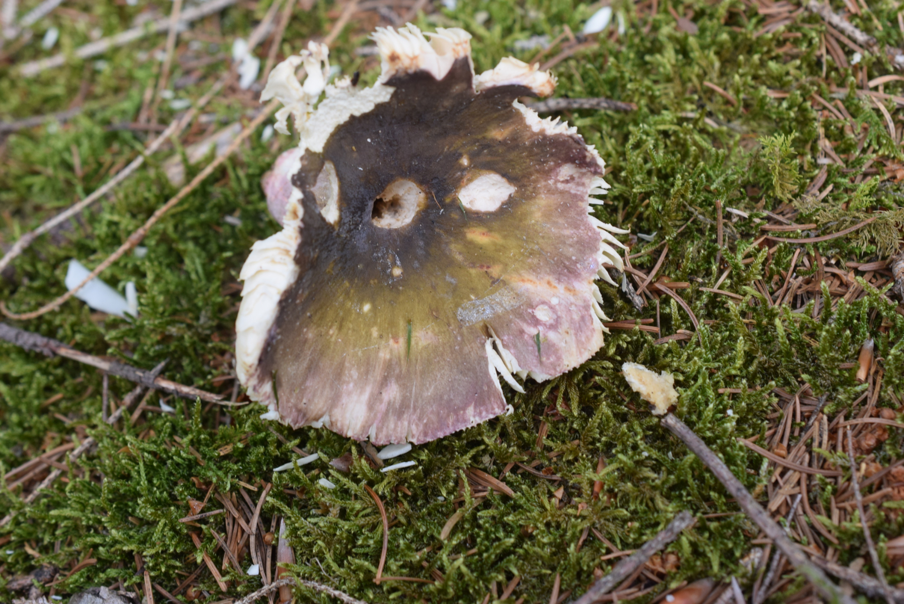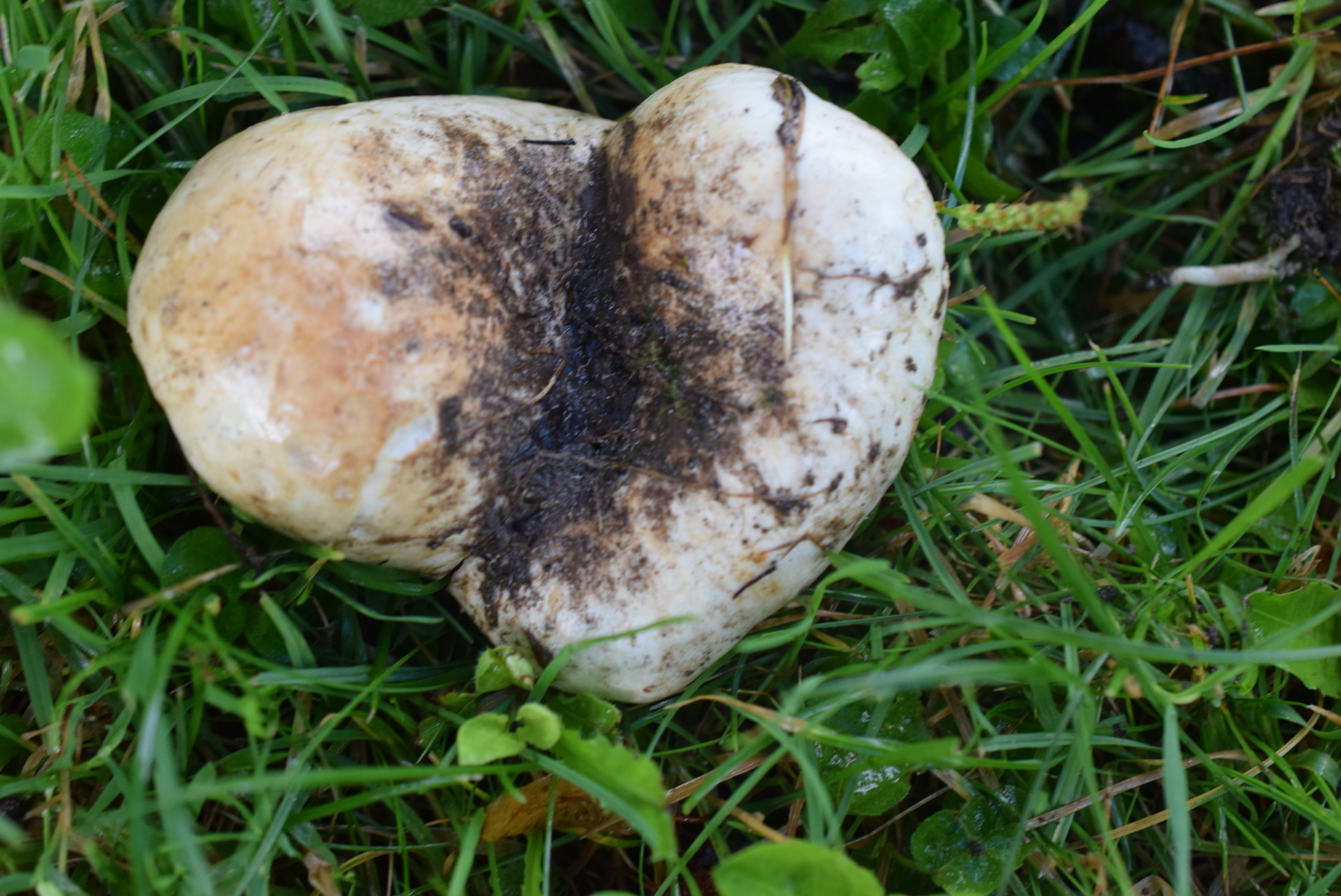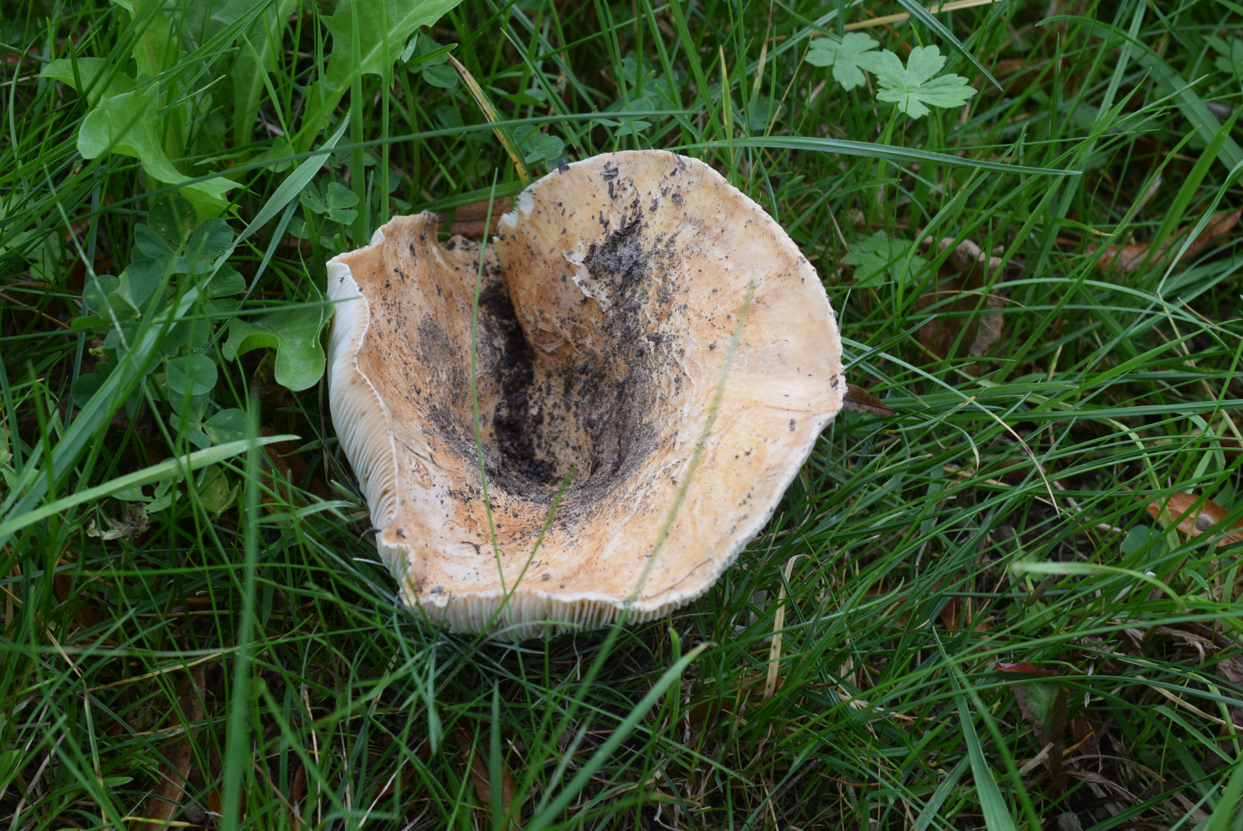 Polyporus squamosus Hutoberfläche von Schnecke gefressen