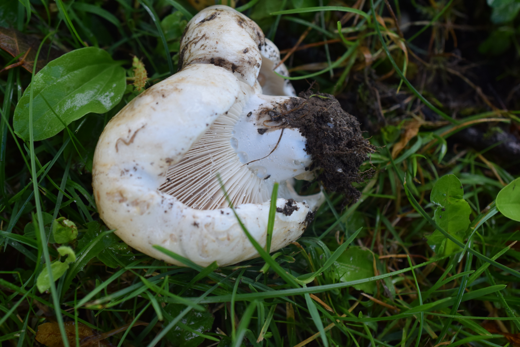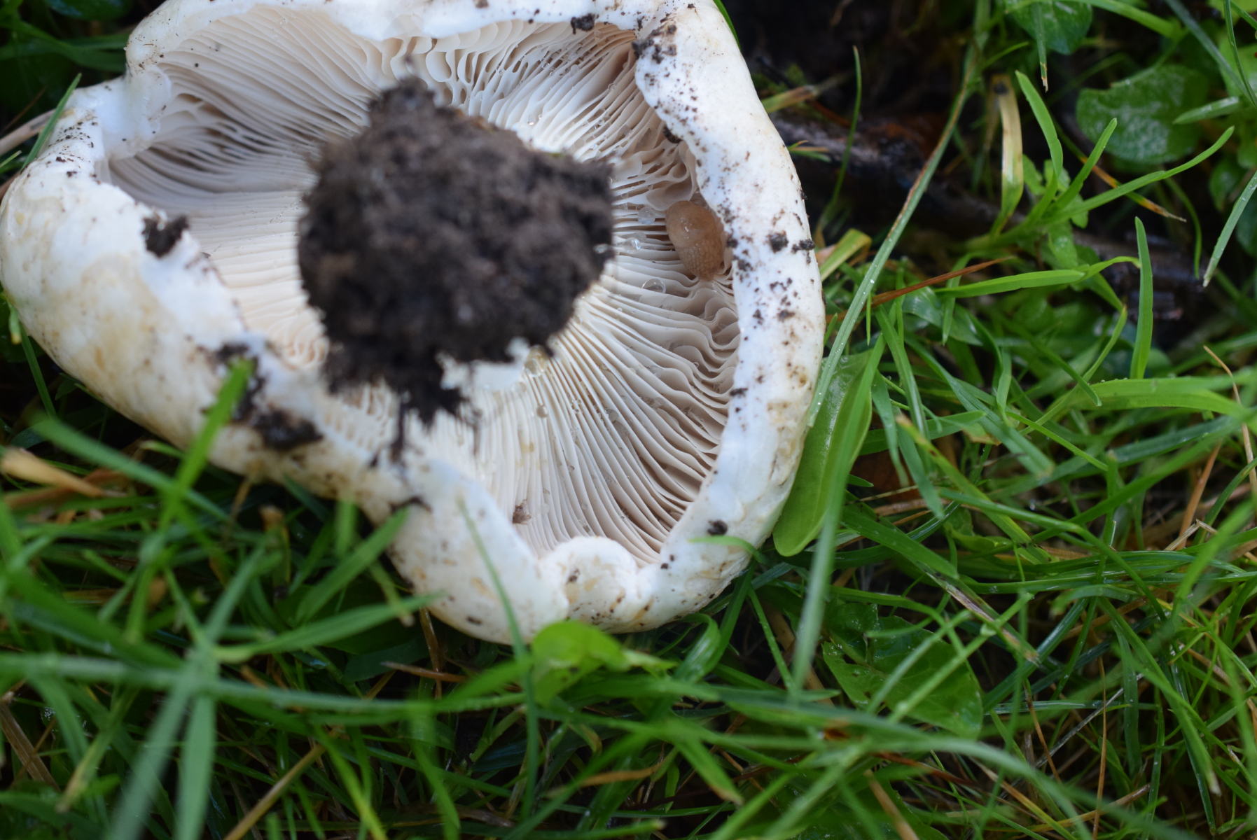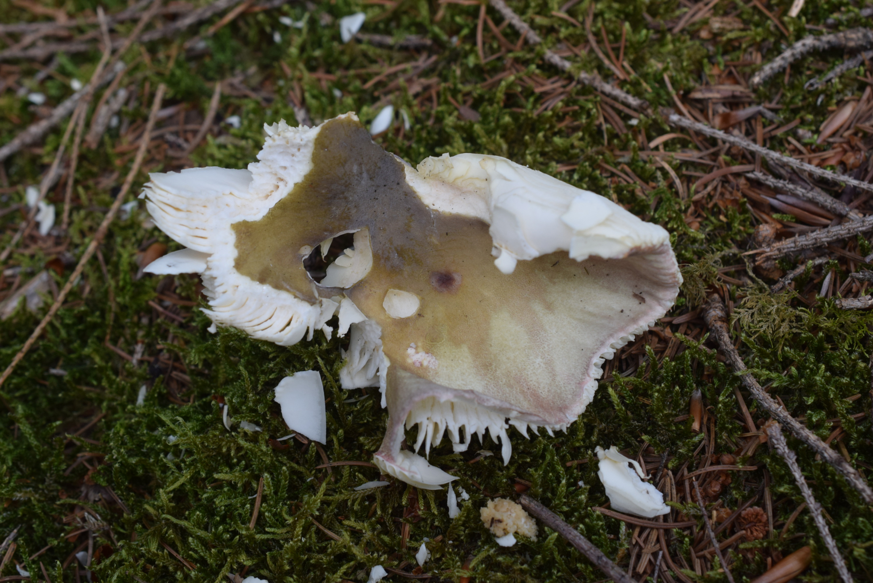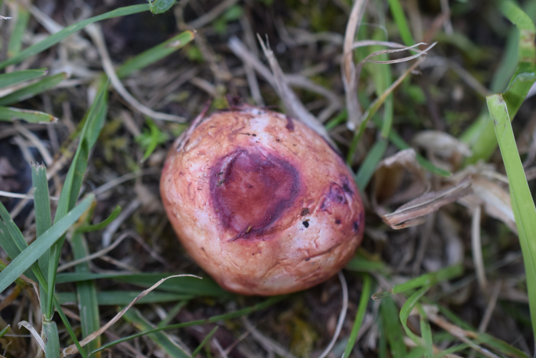 Polyporus squamosus Hutoberfläche von Schnecke gefressen