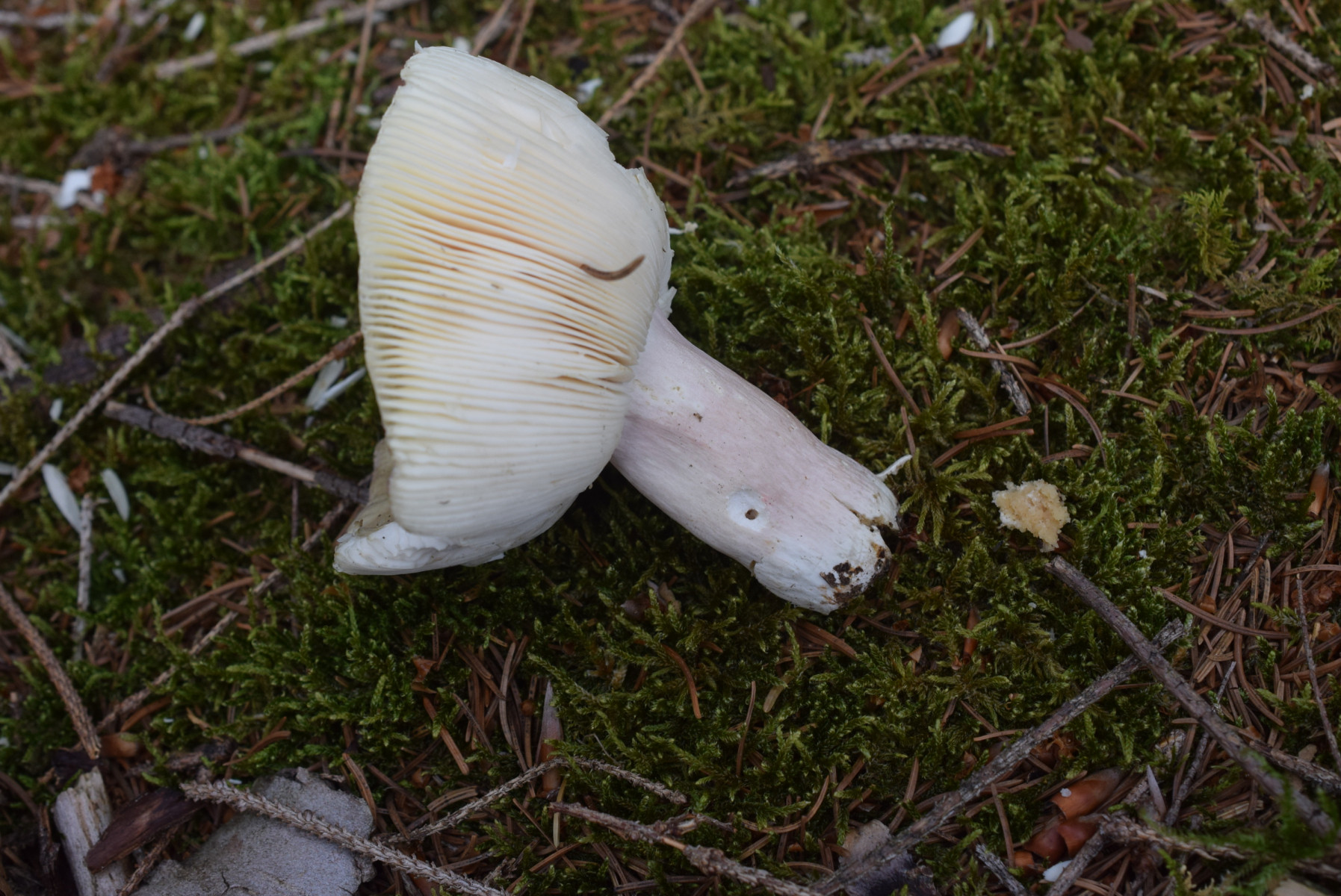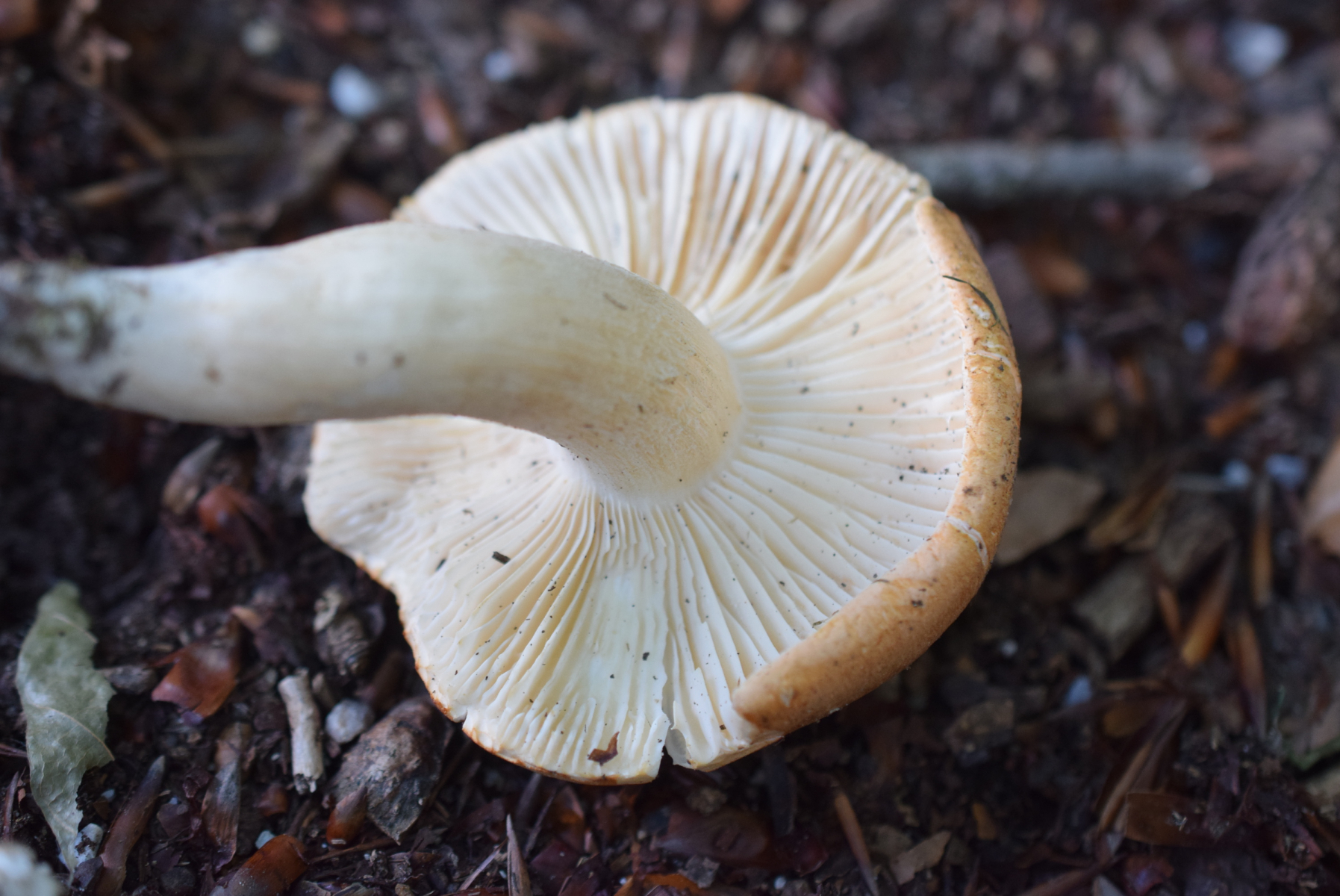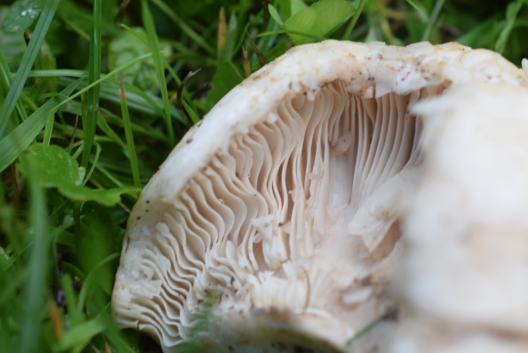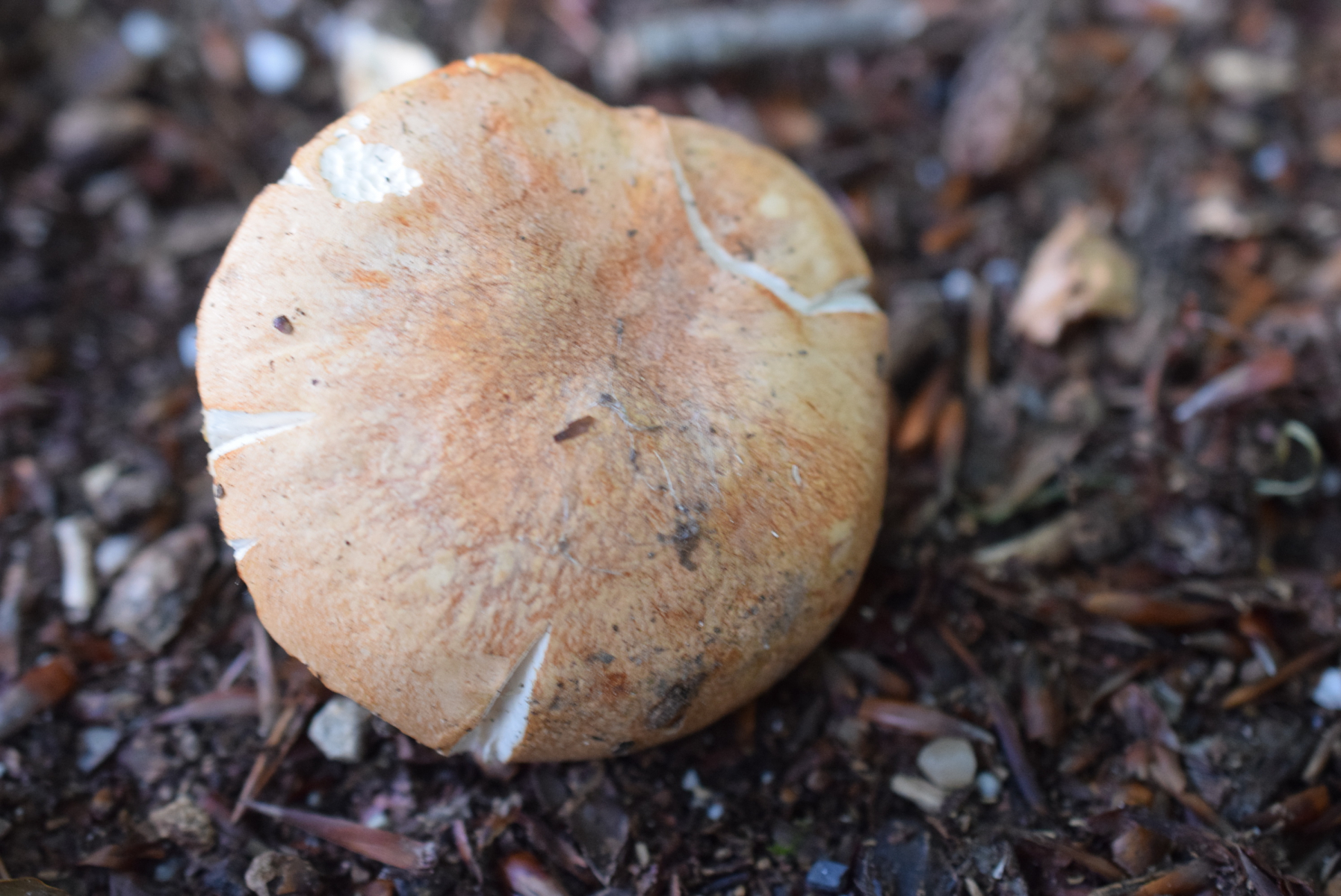 Polyporus squamosus Hutoberfläche von Schnecke gefressen