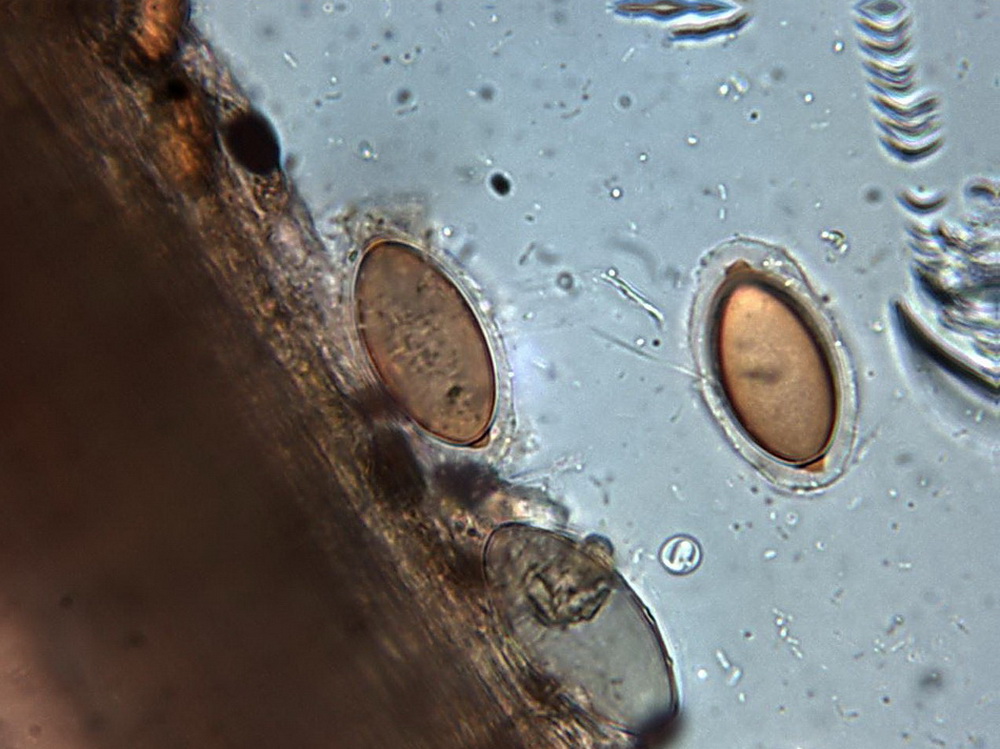 reife Sporen in Gehlhülle mit Fortsatz