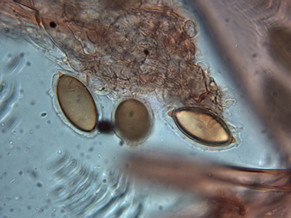 Möglicherweise entstehen diese Endungen an den Sporen durch die Gelhülle wenn sie sich zusammenzieht!