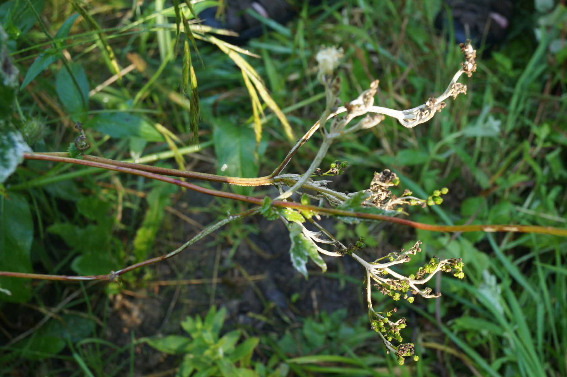 Podosphaera filipendulae an Großem Mädesüß; markant für die Art sind die Deformationen. War für mich eine Erstsichtung.