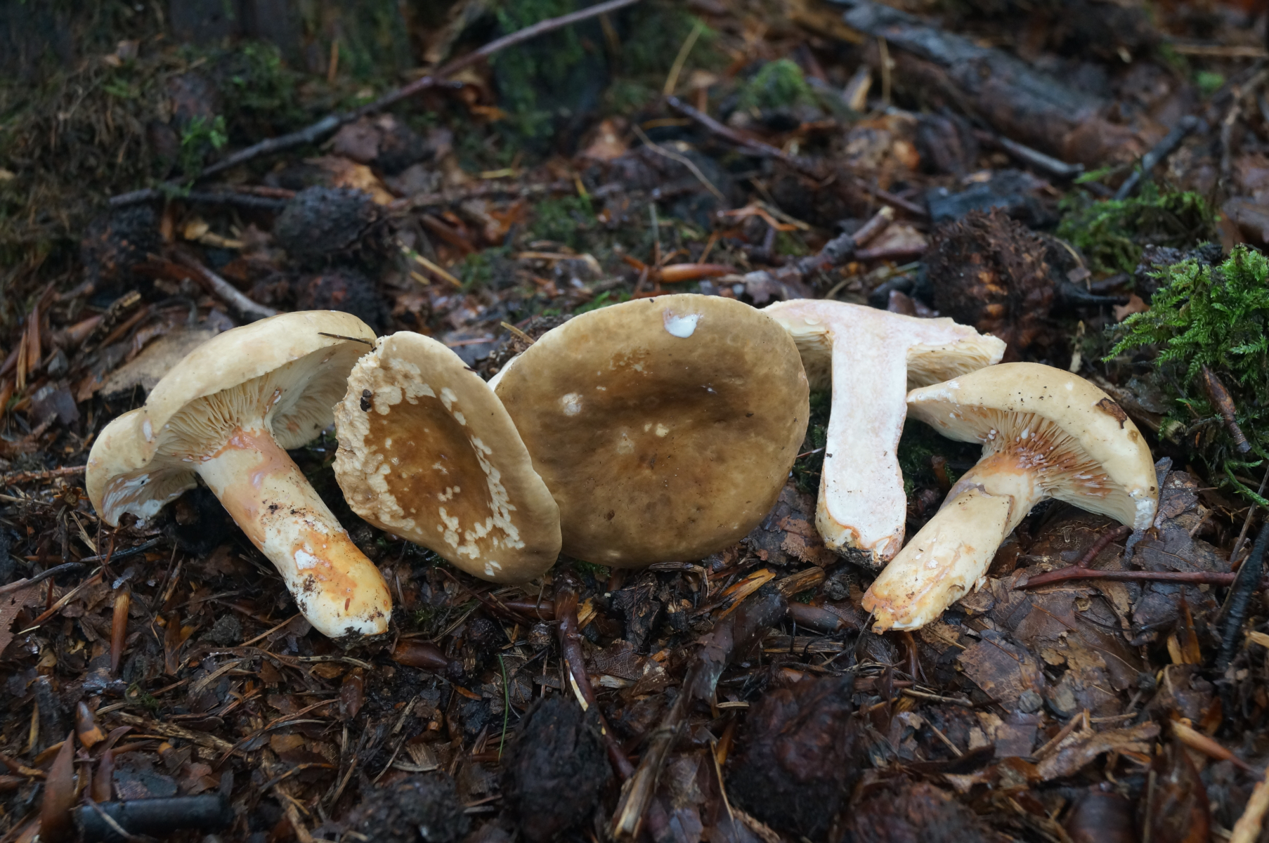 Christoph hatte seinen Termin erledigt ab nun waren wir zu dritt und haben gezielt Habitate angefahren, die lohnenswert waren. Es ging mit einem Neufund für ein kleines Minipark-Gelände los über den Christoph sich sehr gefreut hat. Russula insignis- Milder Kammtäubling; der einzige Kammtäubling mit roter KOH-Reaktion in der Stielbasis.