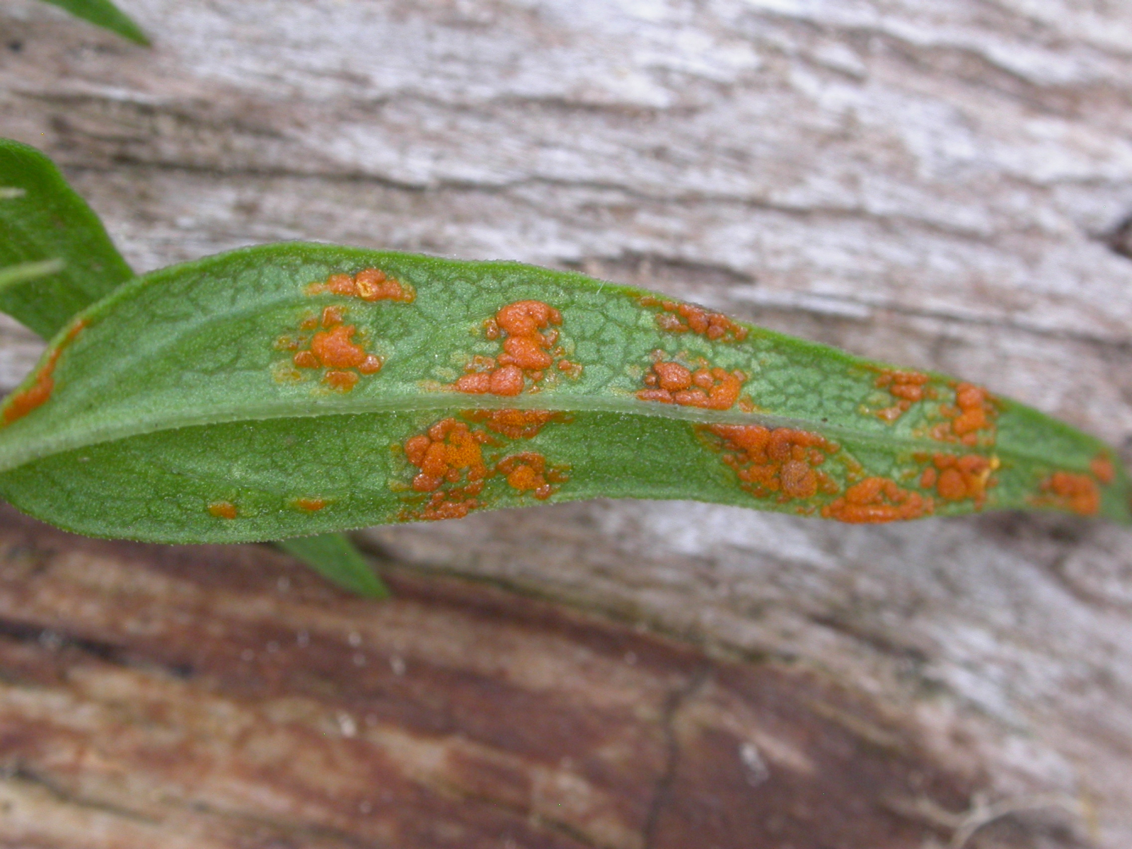 Tagsüber hatte ich natürlich noch ein paar Blättchen mitgenommen und abends noch nachbestimmt. Der hier war leicht. Ramularia lapsanae an Rainkohl.