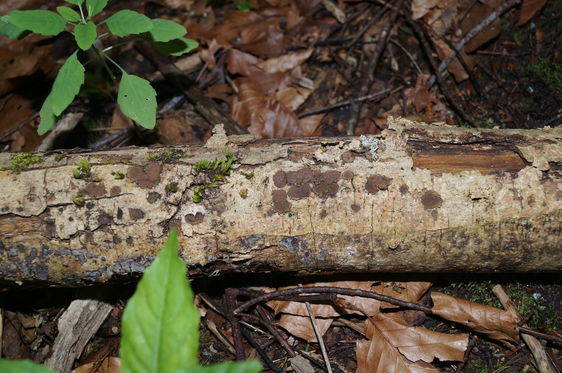 eine Hypoxylon an Esche, deren Namen ich vergessen habe; edit: Hypoxylon cercidiculum - Mährische Kohlenbeere; danke Werner ![]()